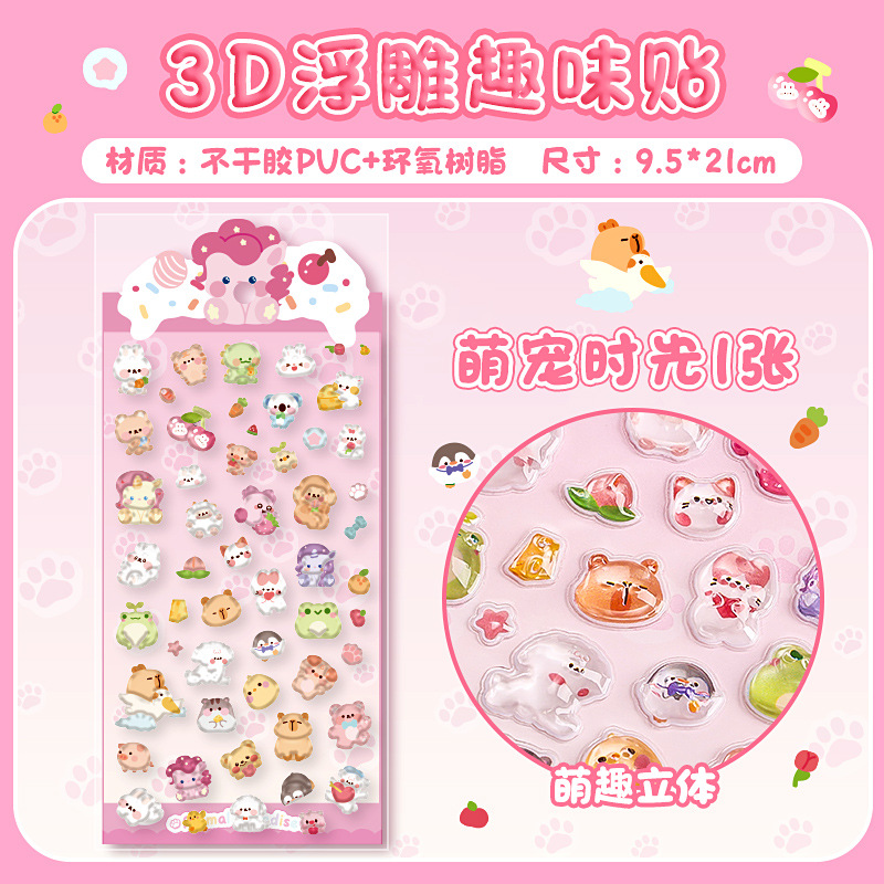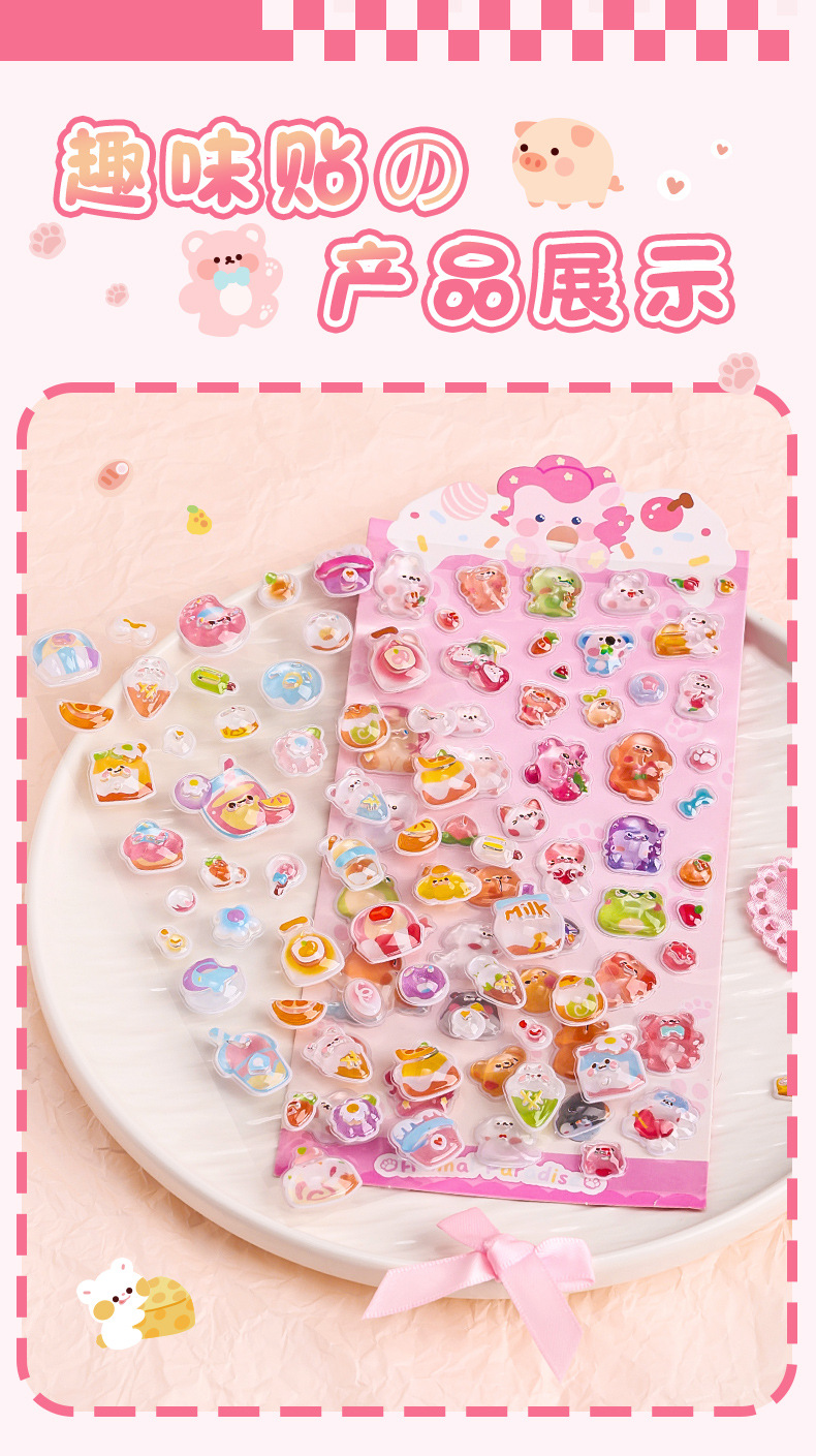 3D 입체 구호 스티커 어린이 재미 장식 스티커 방수 투명 만화 크리스탈 스티커 diy 페이스트 소재