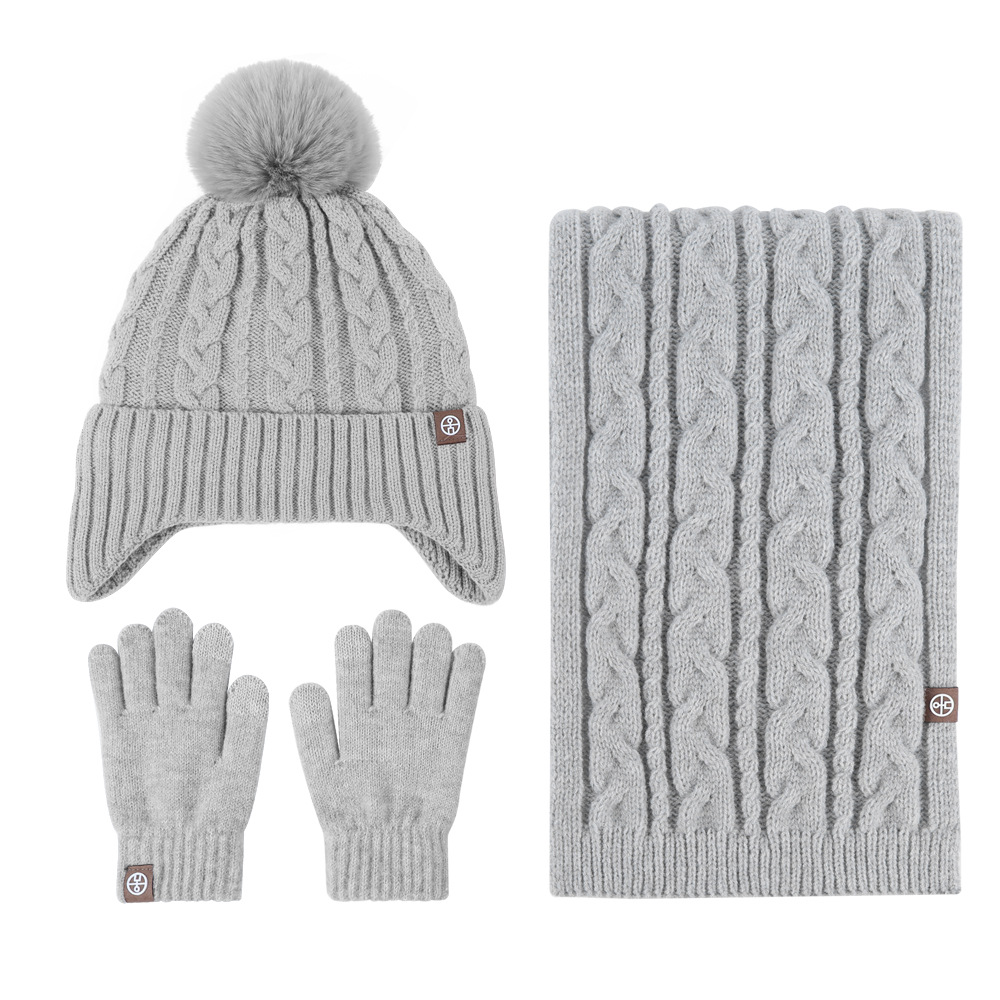겨울 기모 따뜻한 어린이 모자 귀여운 귀 보호 소녀 모자 장갑 스카프 세트 헤어 볼 두꺼운 니트