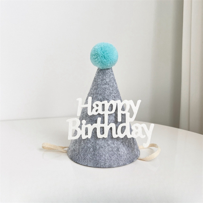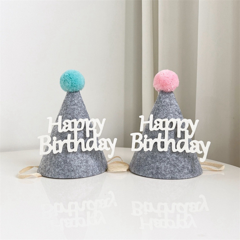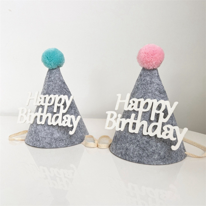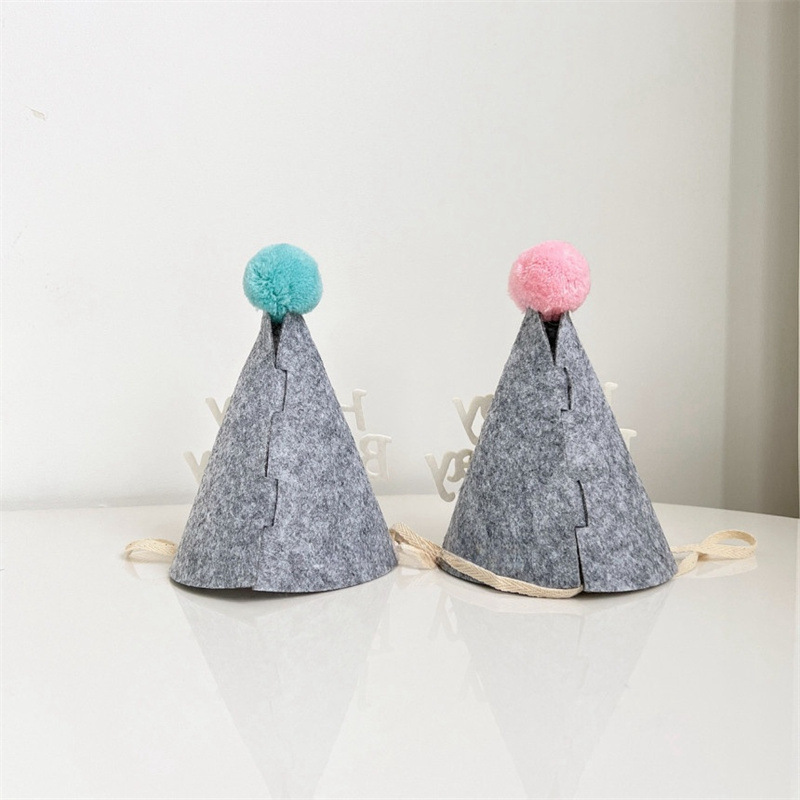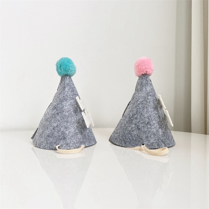 Ins 같은 스타일 한국 생일 부직포 모자 인터넷 인기있는 귀여운 회색 아기 어린이 파티 소품 사진