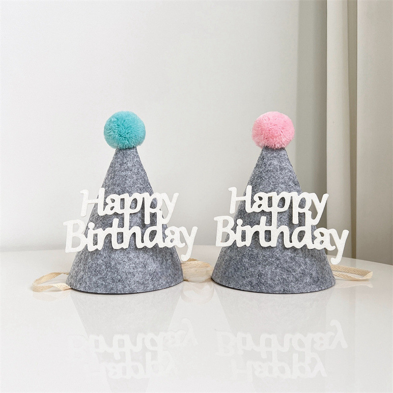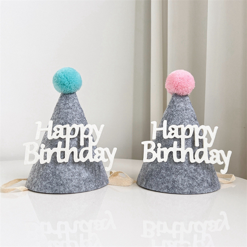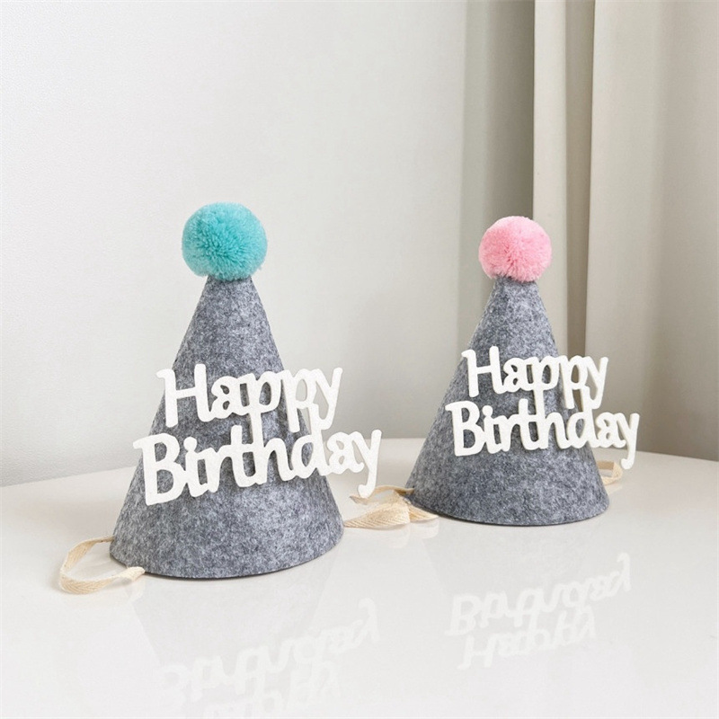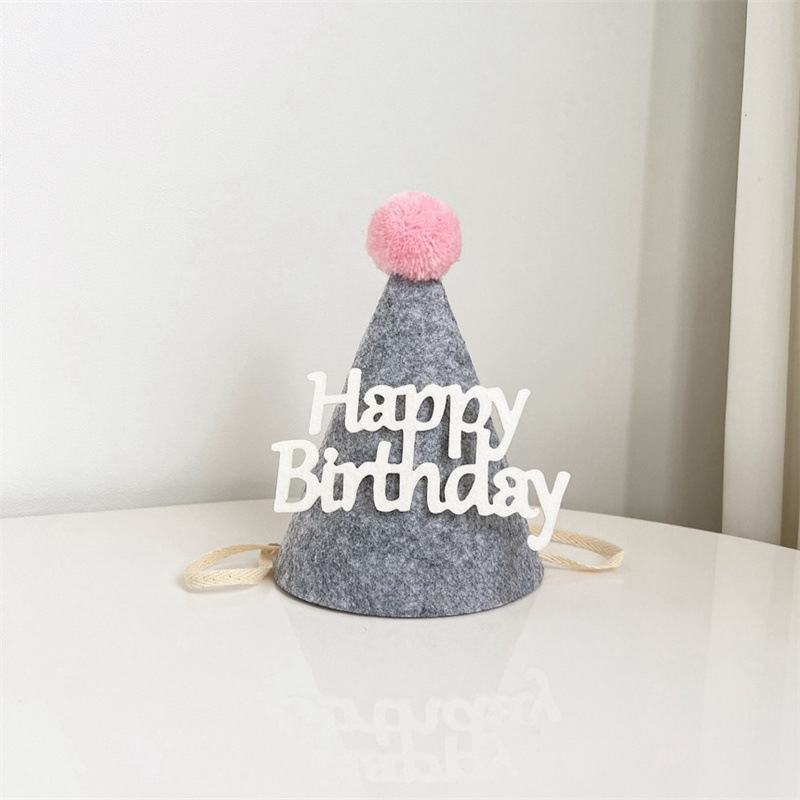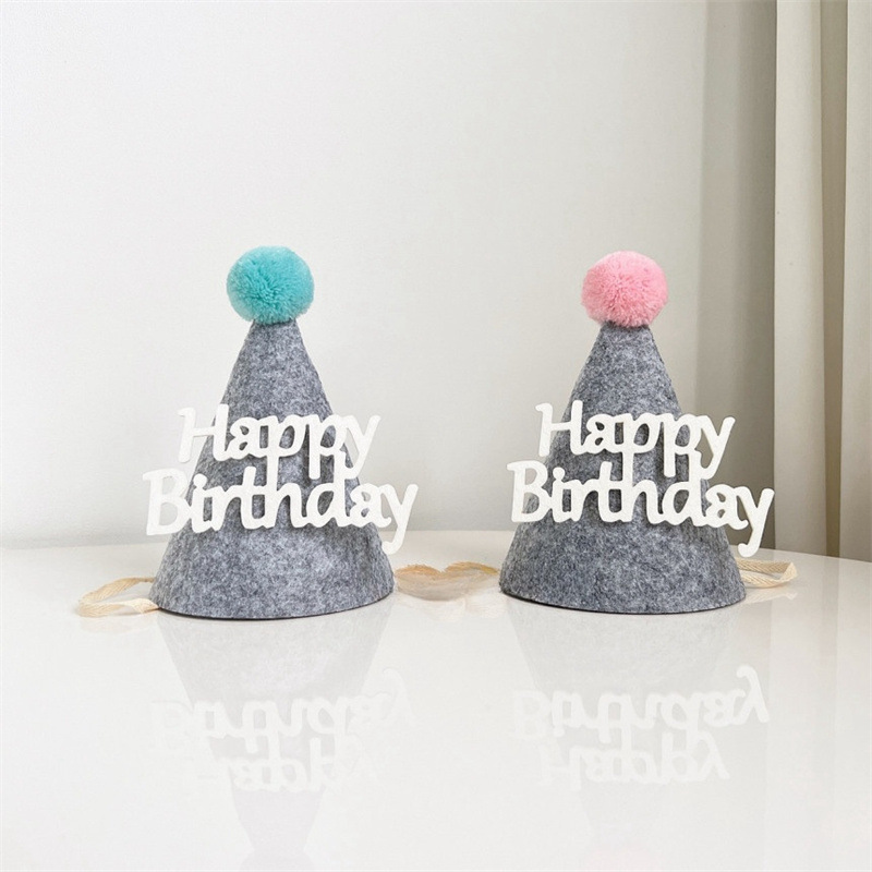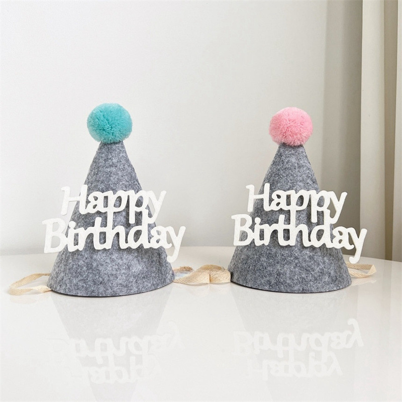 Ins 같은 스타일 한국 생일 부직포 모자 인터넷 인기있는 귀여운 회색 아기 어린이 파티 소품 사진
