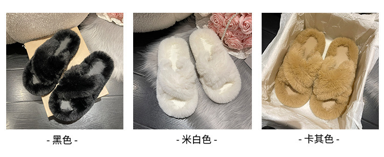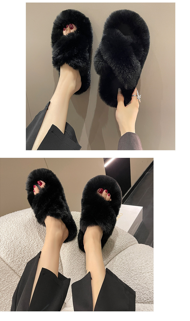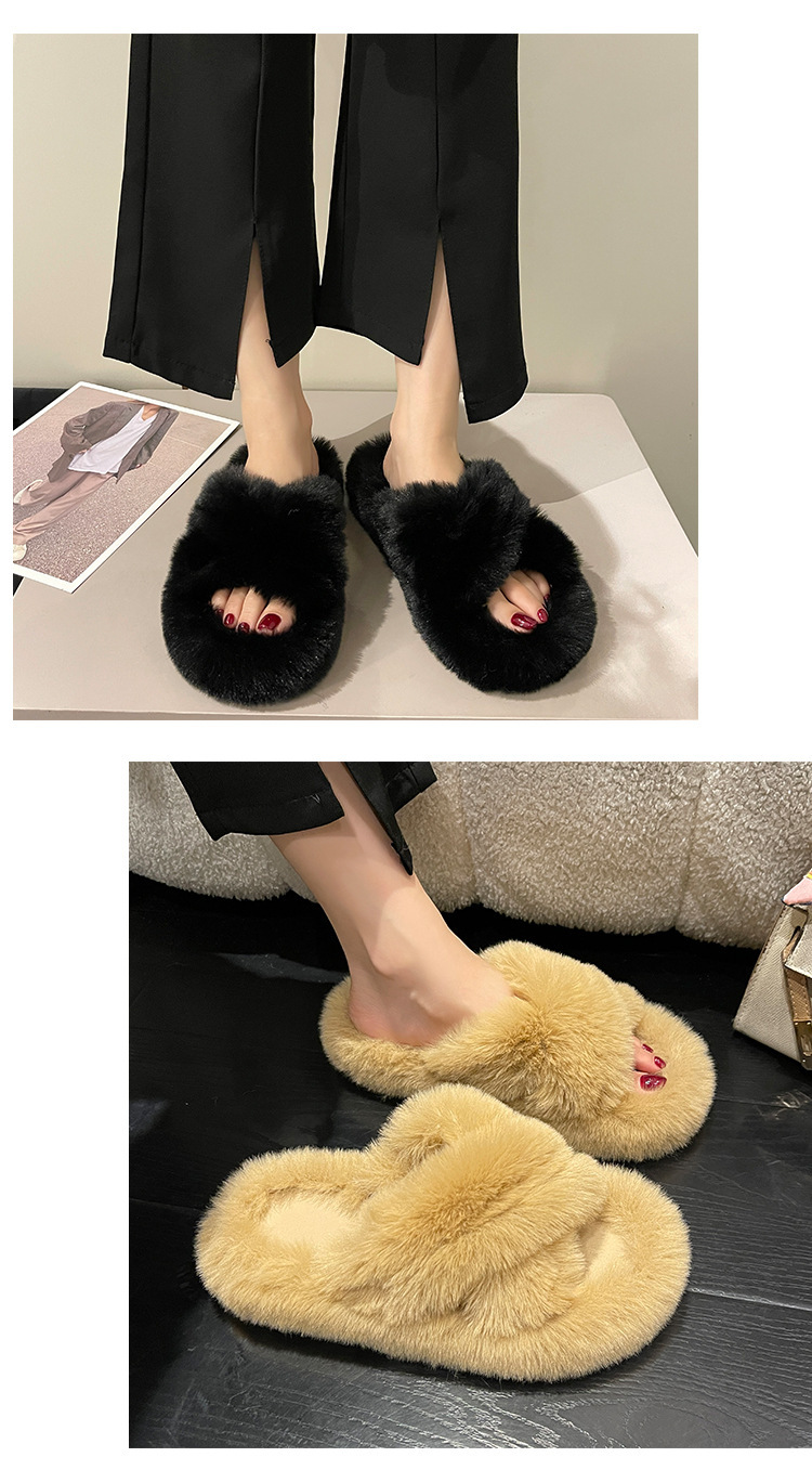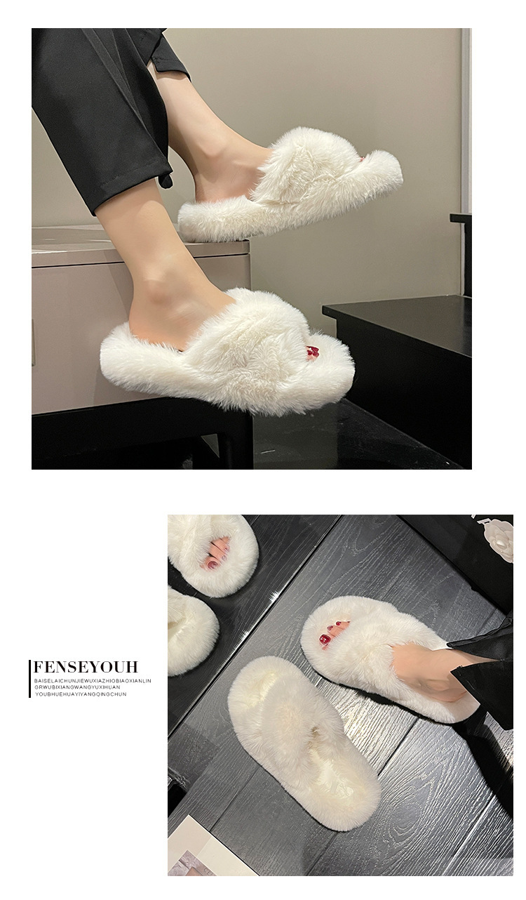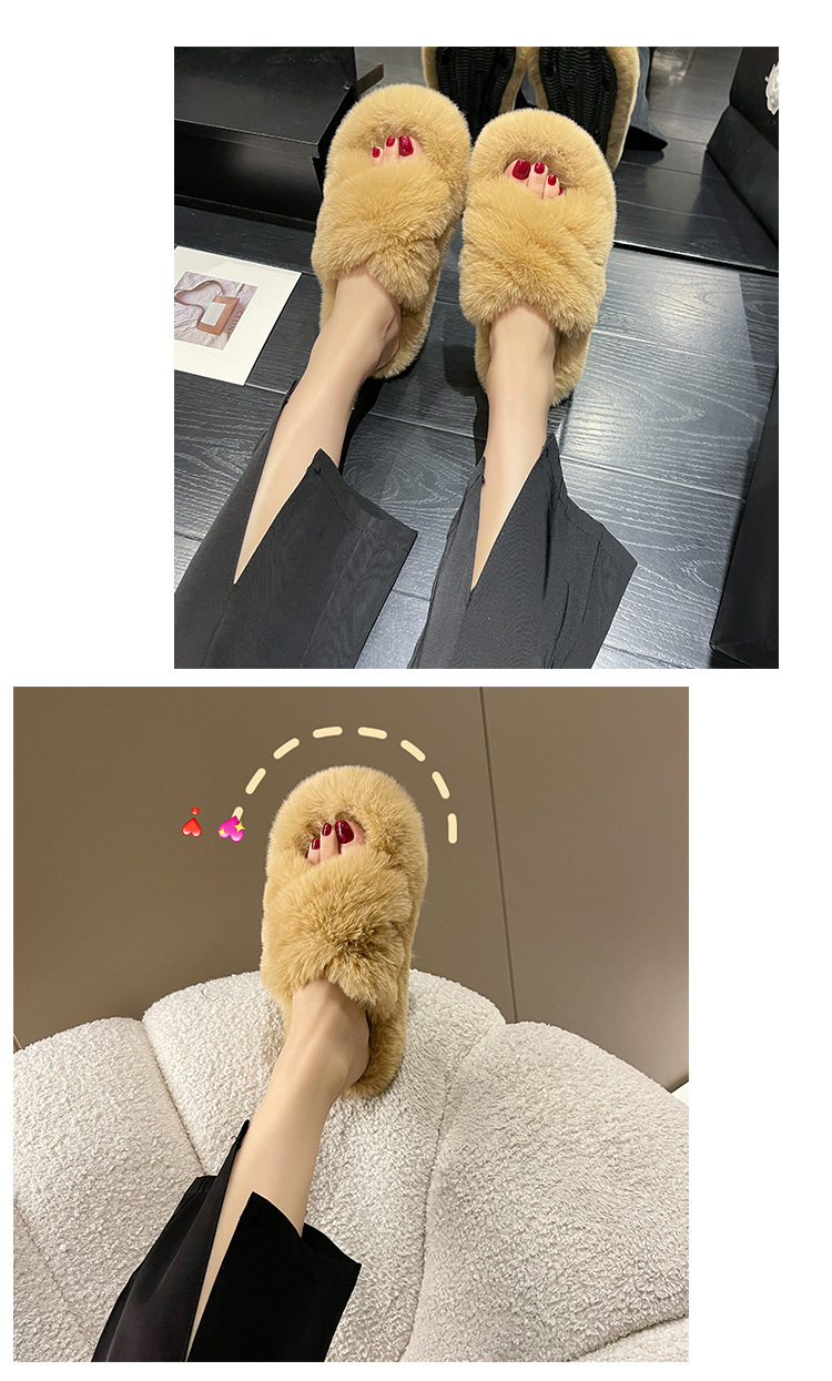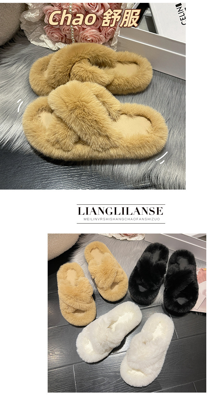 모직 슬리퍼 여성용 외부 착용 두꺼운 바닥 새로운 한국식 미끄럼 방지 크로스 오버 슬라이드 플랫 가정용 면 슬리퍼