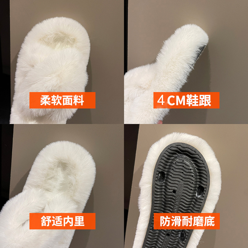 모직 슬리퍼 여성용 외부 착용 두꺼운 바닥 새로운 한국식 미끄럼 방지 크로스 오버 슬라이드 플랫 가정용 면 슬리퍼스토어 가기