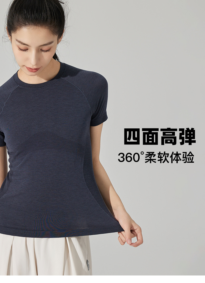메리노 울 텐셀 캐주얼 올 매치 피트니스 탑 요가 의류 달리기 필라테스 스포츠 티셔츠 반팔 여성