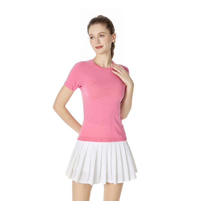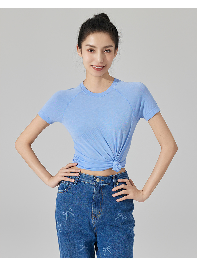 메리노 울 텐셀 캐주얼 올 매치 피트니스 탑 요가 의류 달리기 필라테스 스포츠 티셔츠 반팔 여성스토어 가기