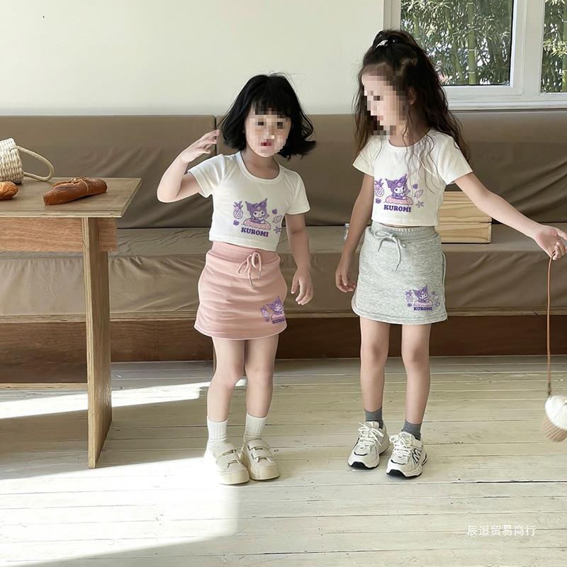 소녀 세트 귀여운 반팔 티셔츠 스커트 세트 2025 여름 새로운 유행 어린이 탑