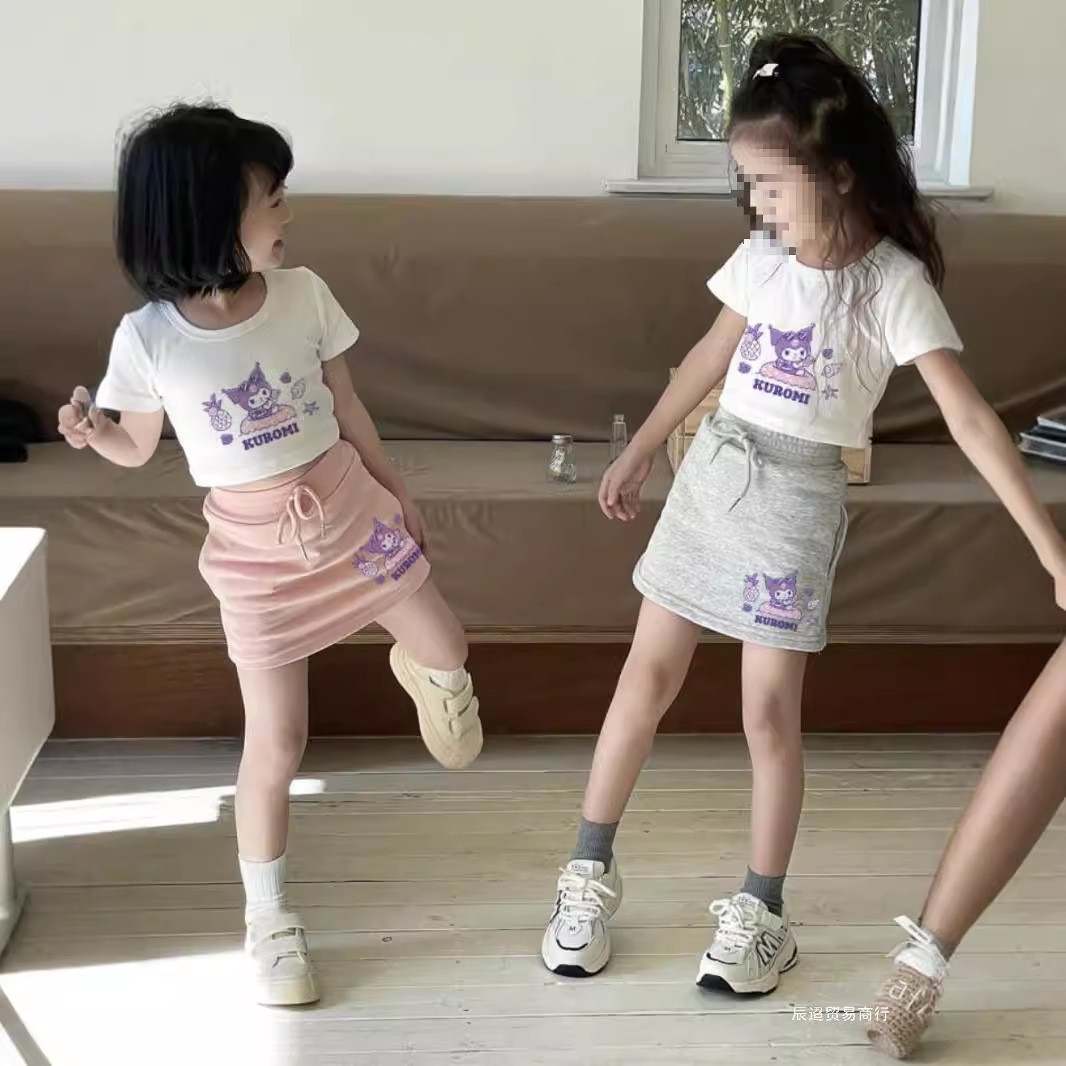 소녀 세트 귀여운 반팔 티셔츠 스커트 세트 2025 여름 새로운 유행 어린이 탑스토어 가기