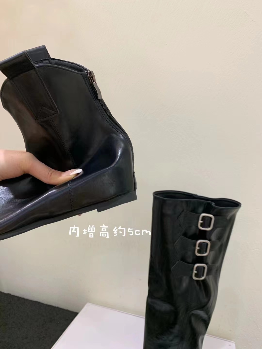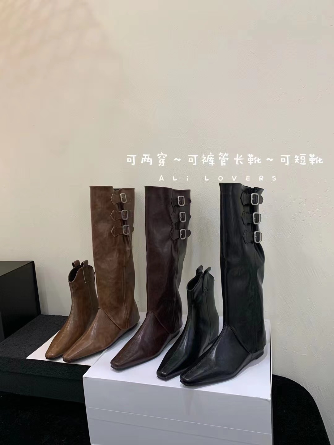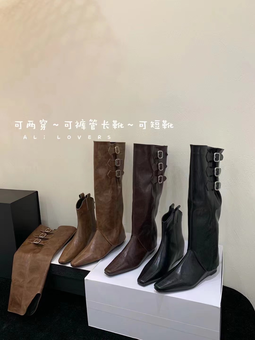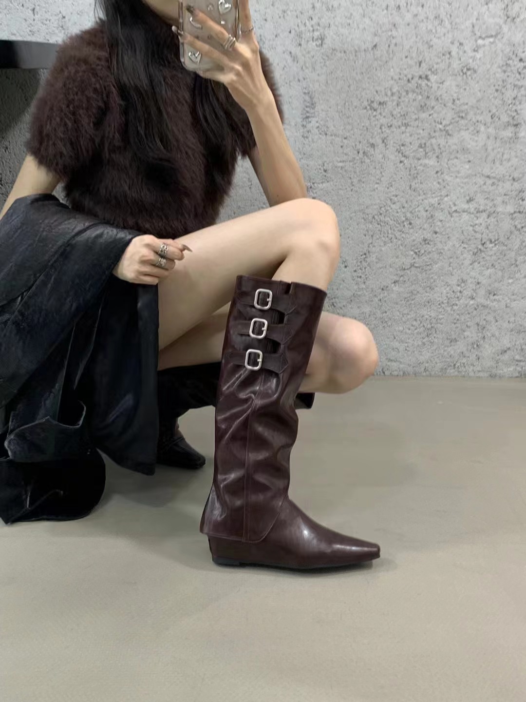 벨트 버클 2024 가을 및 겨울 새로운 2 복 분리 가능한 부츠 벨트 버클 뾰족한 미드 힐 발목 부츠 여성용 하이 부츠스토어 가기