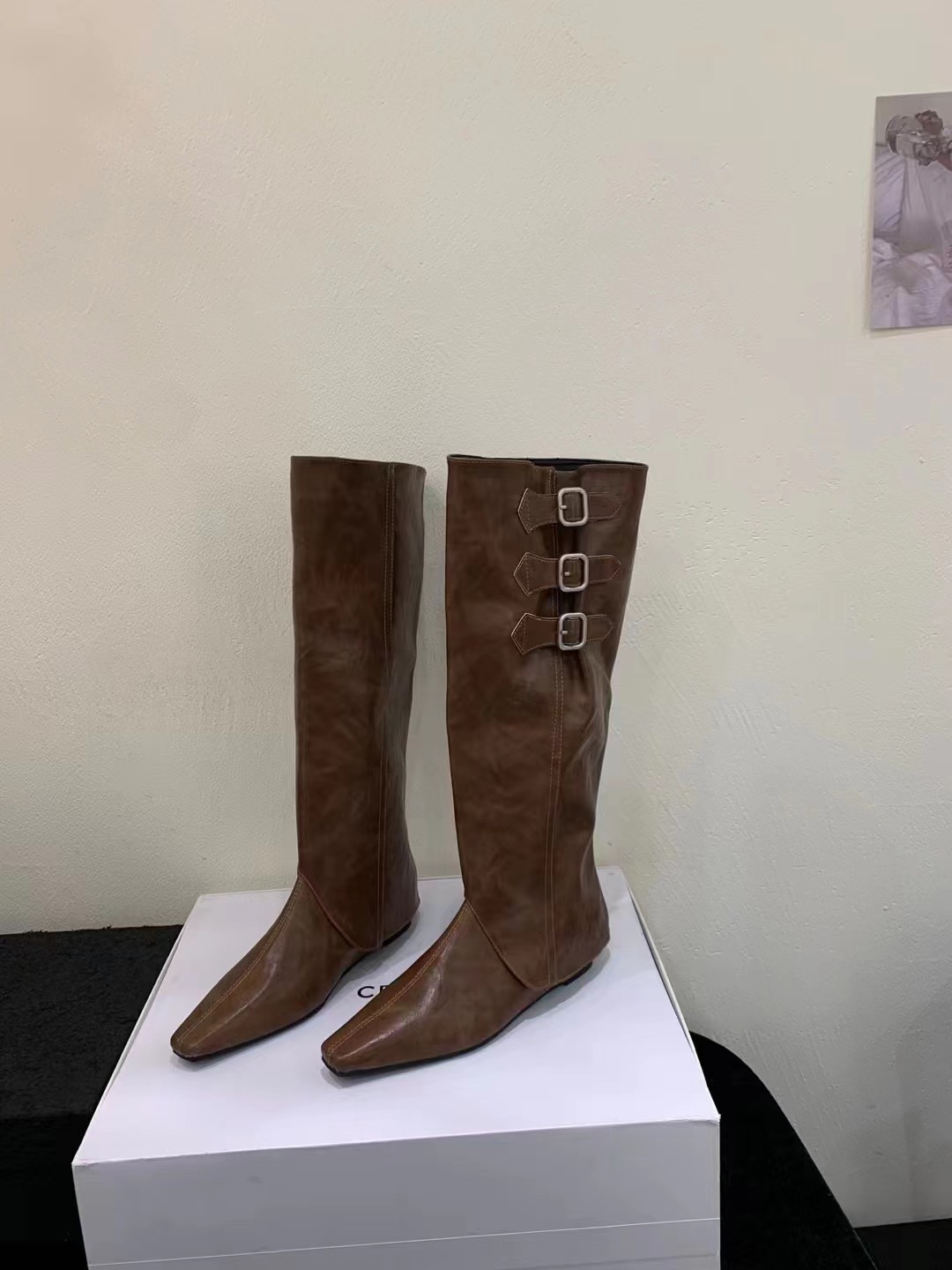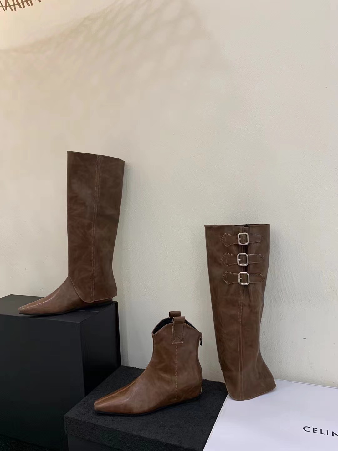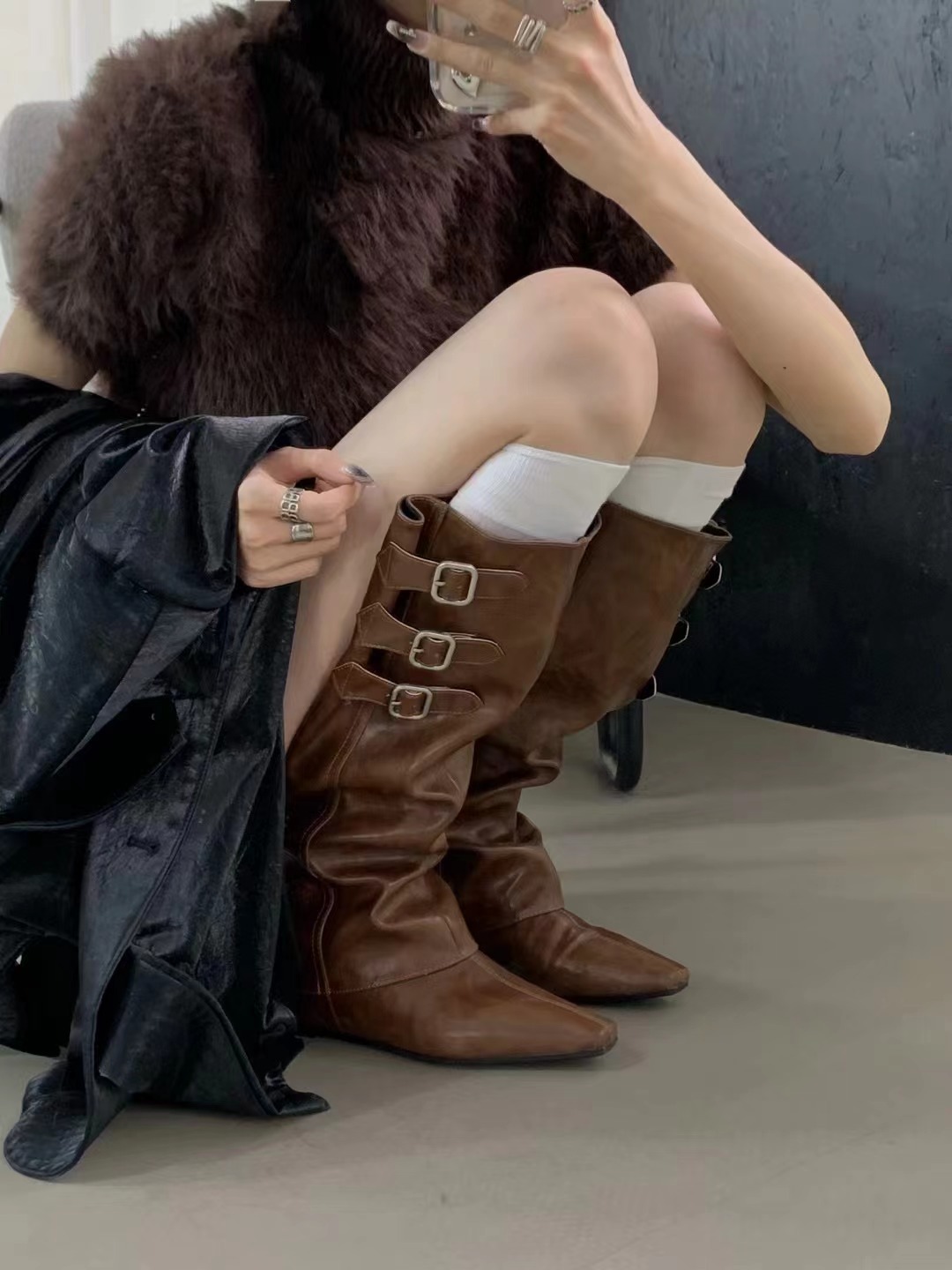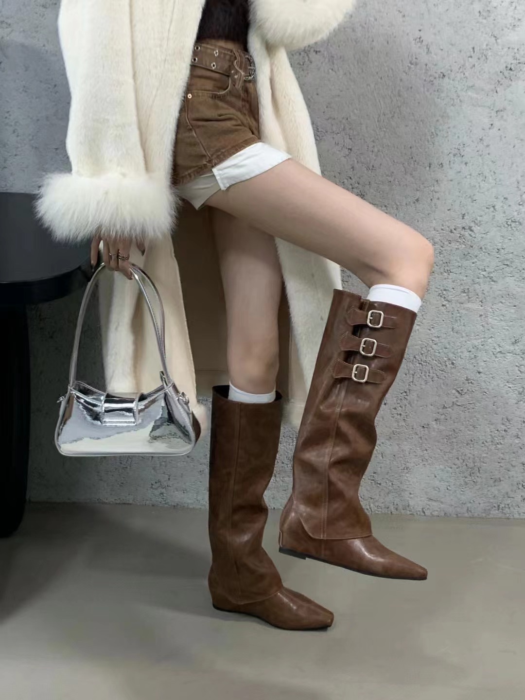 벨트 버클 2024 가을 및 겨울 새로운 2 복 분리 가능한 부츠 벨트 버클 뾰족한 미드 힐 발목 부츠 여성용 하이 부츠스토어 가기