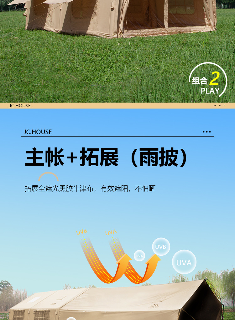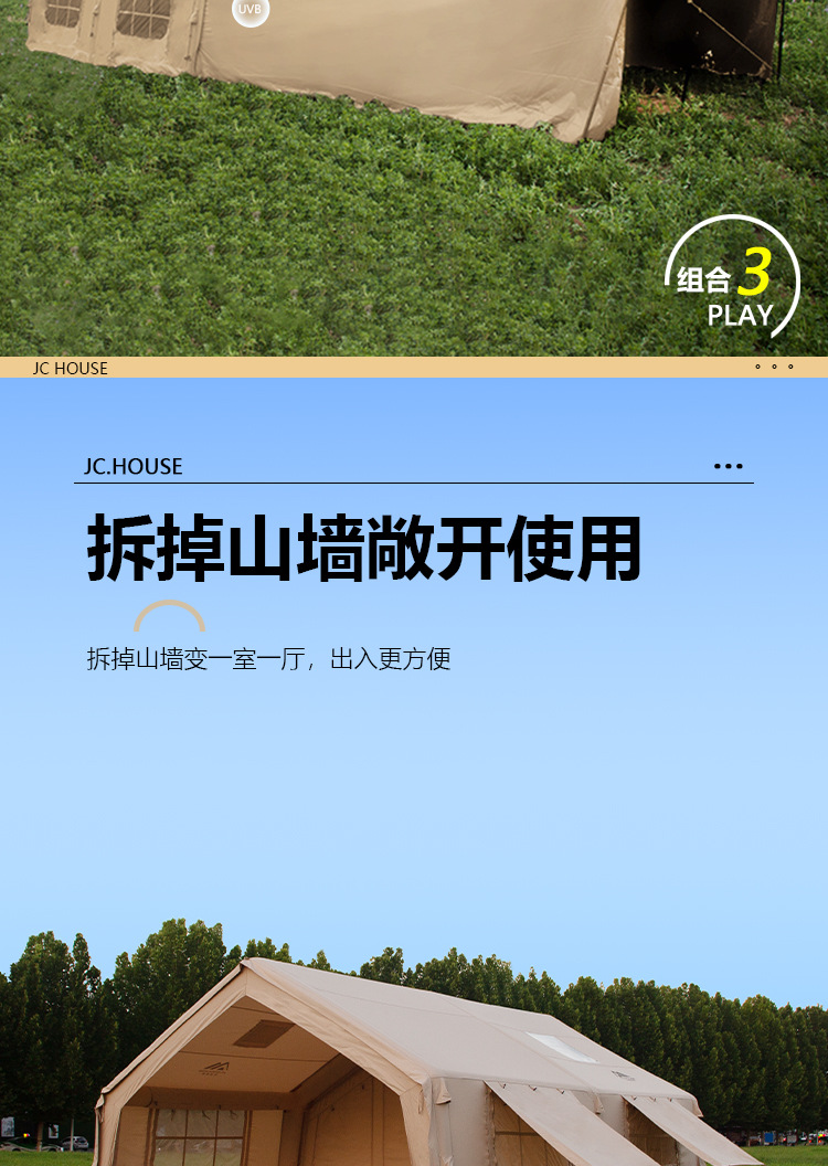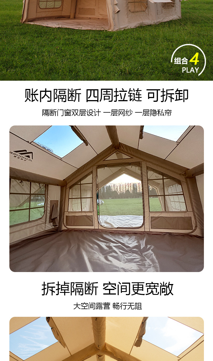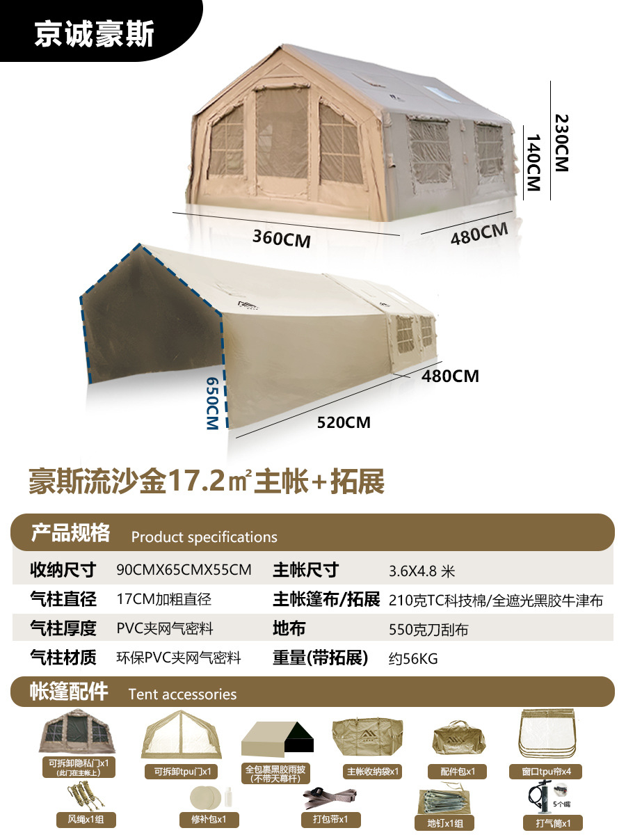 징청하우스JcHouse17.2 ㎡ 공기주입식 텐트 캠핑 캠프장 면직물 공기주입식 지붕 텐트