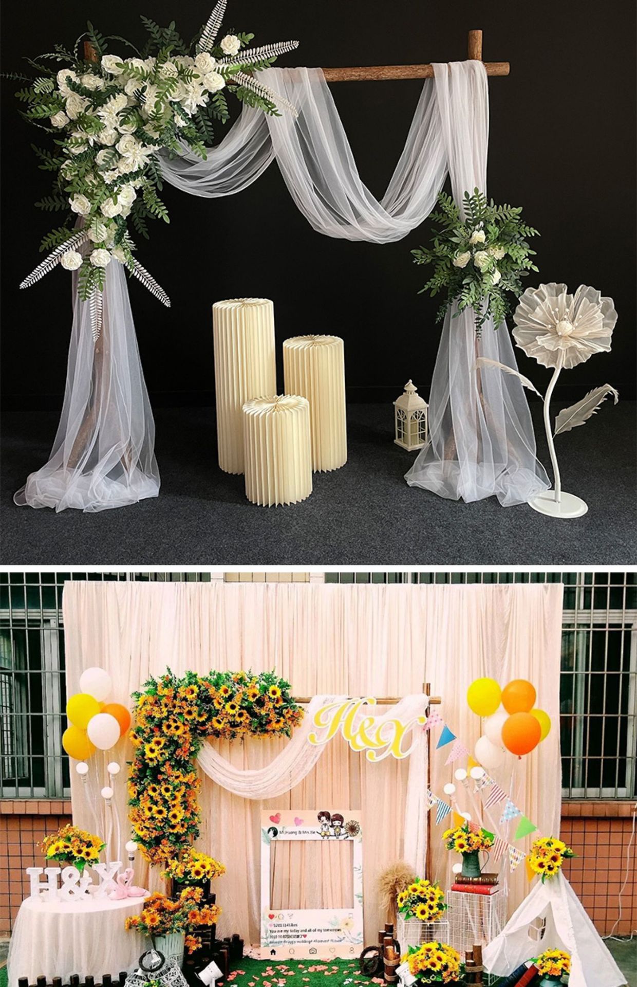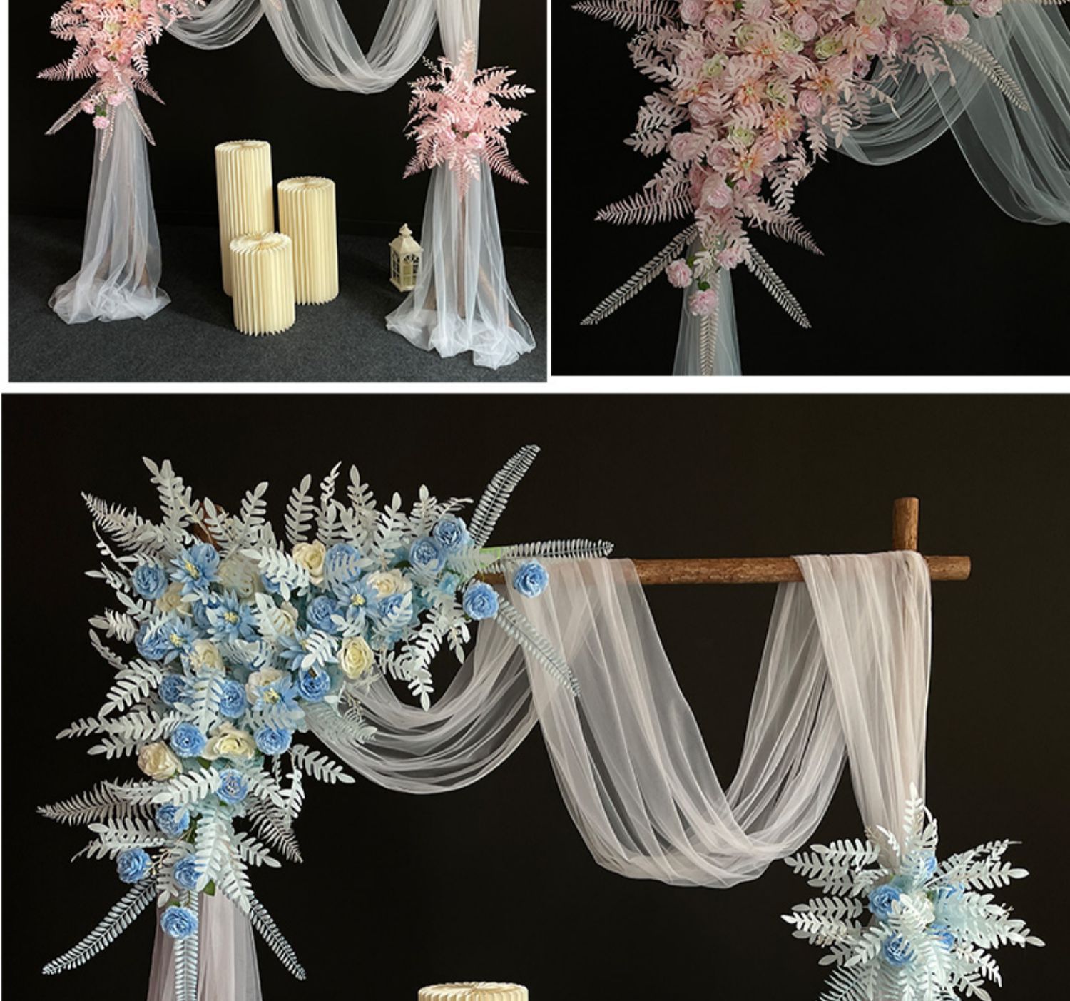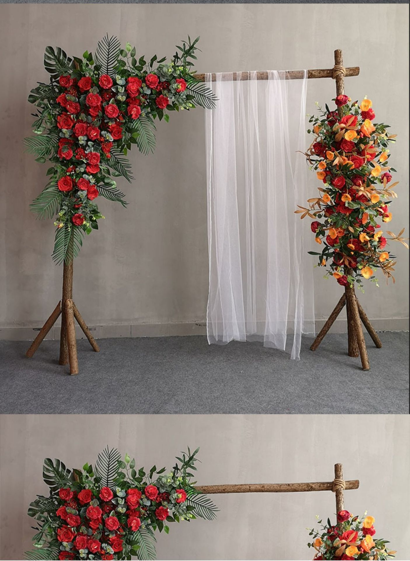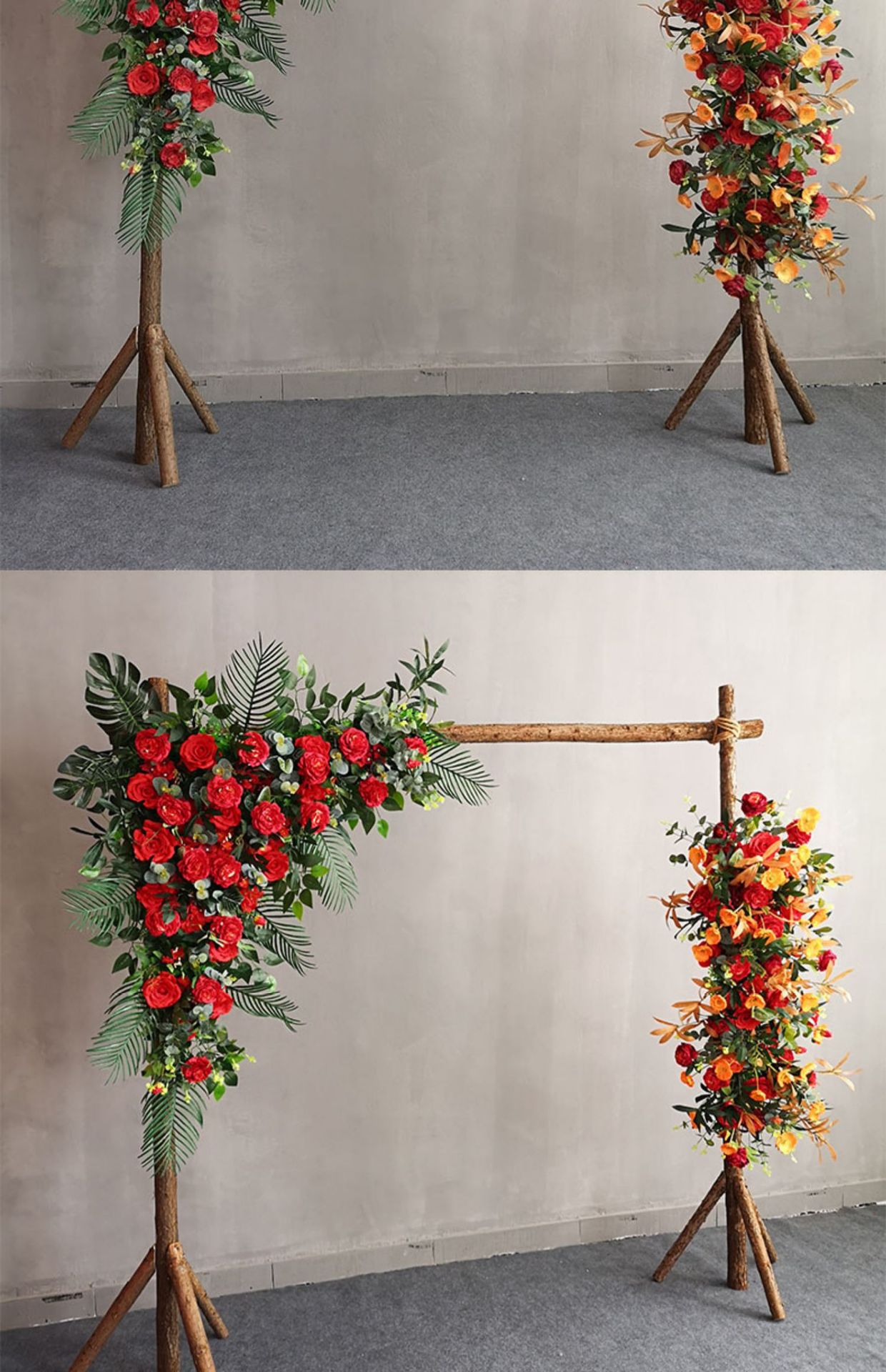 웨딩 모리 우드 스테이크 도어 아치 잔디 야외 웨딩 우드 선반 꽃 문 배열 나무 스테이크 배경 장식품스토어 가기