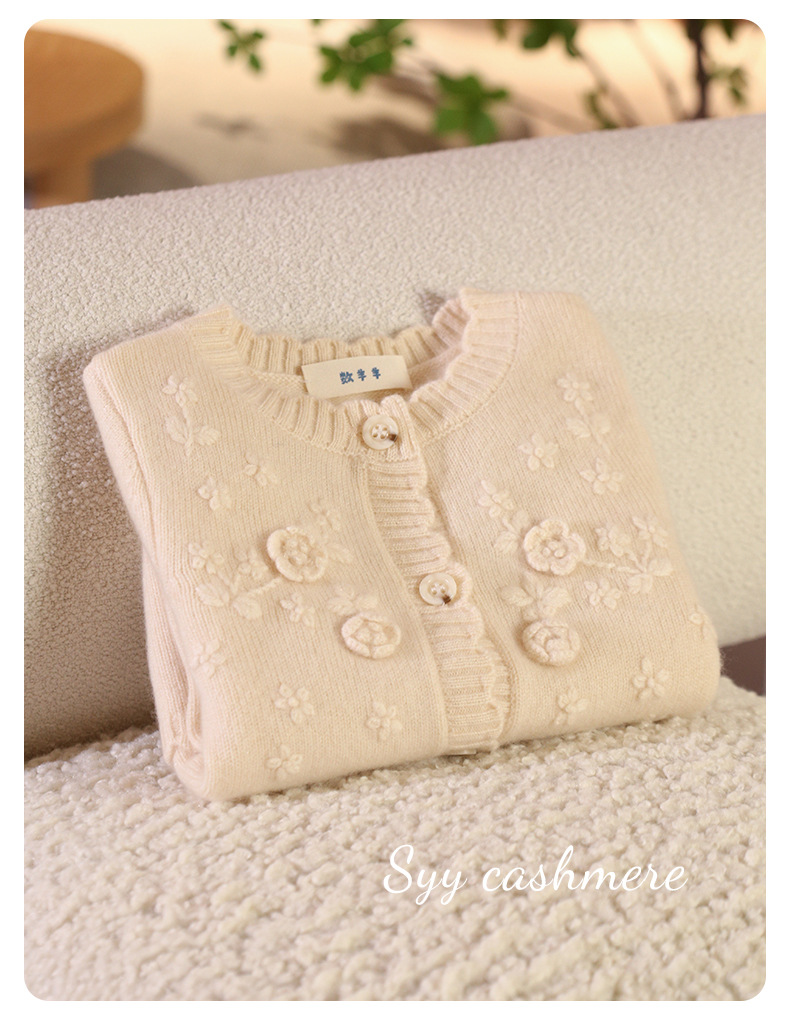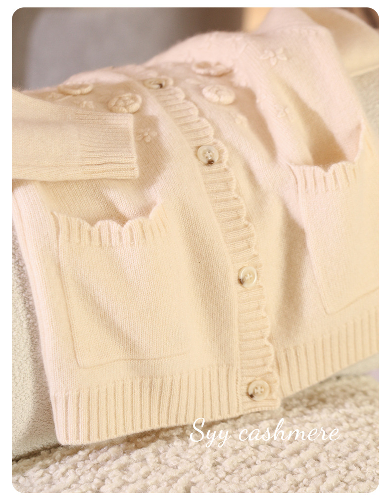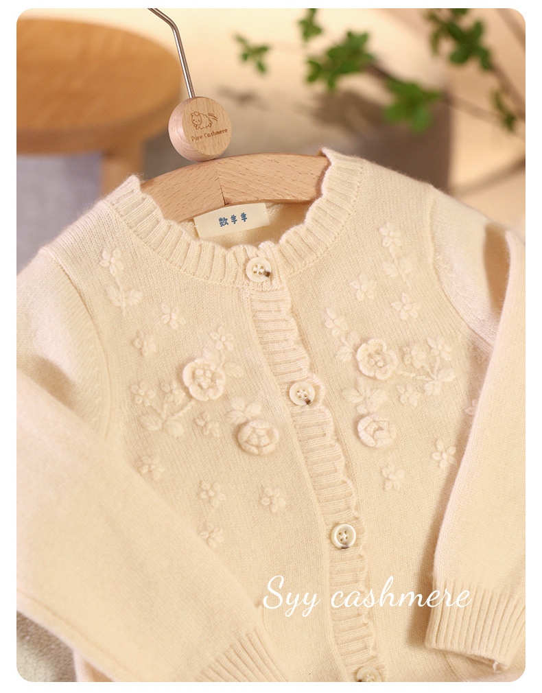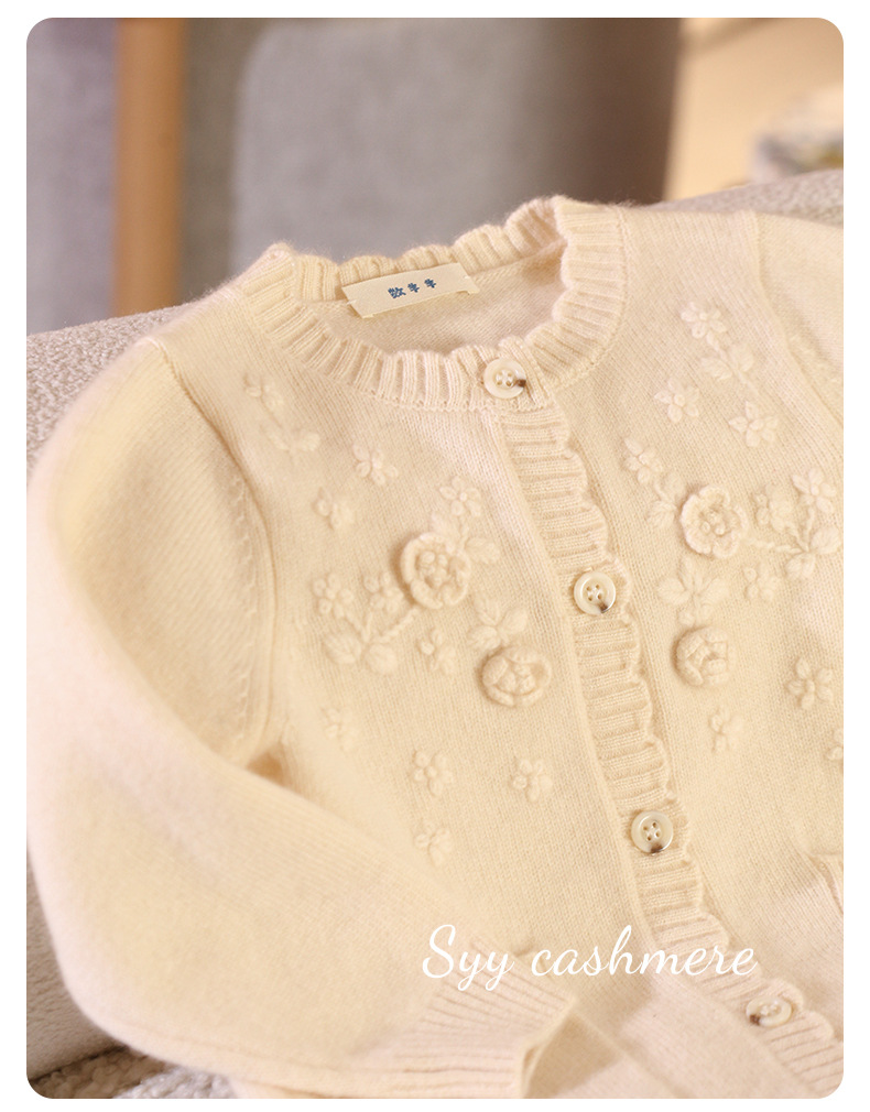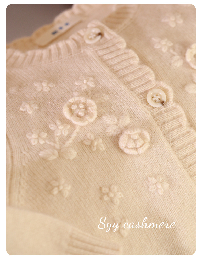 양과 염소 가을과 겨울 소녀 아기 스테레오 크로 셰 스위트 레이스 칼라 순수 캐시미어 니트 스웨터 카디건
