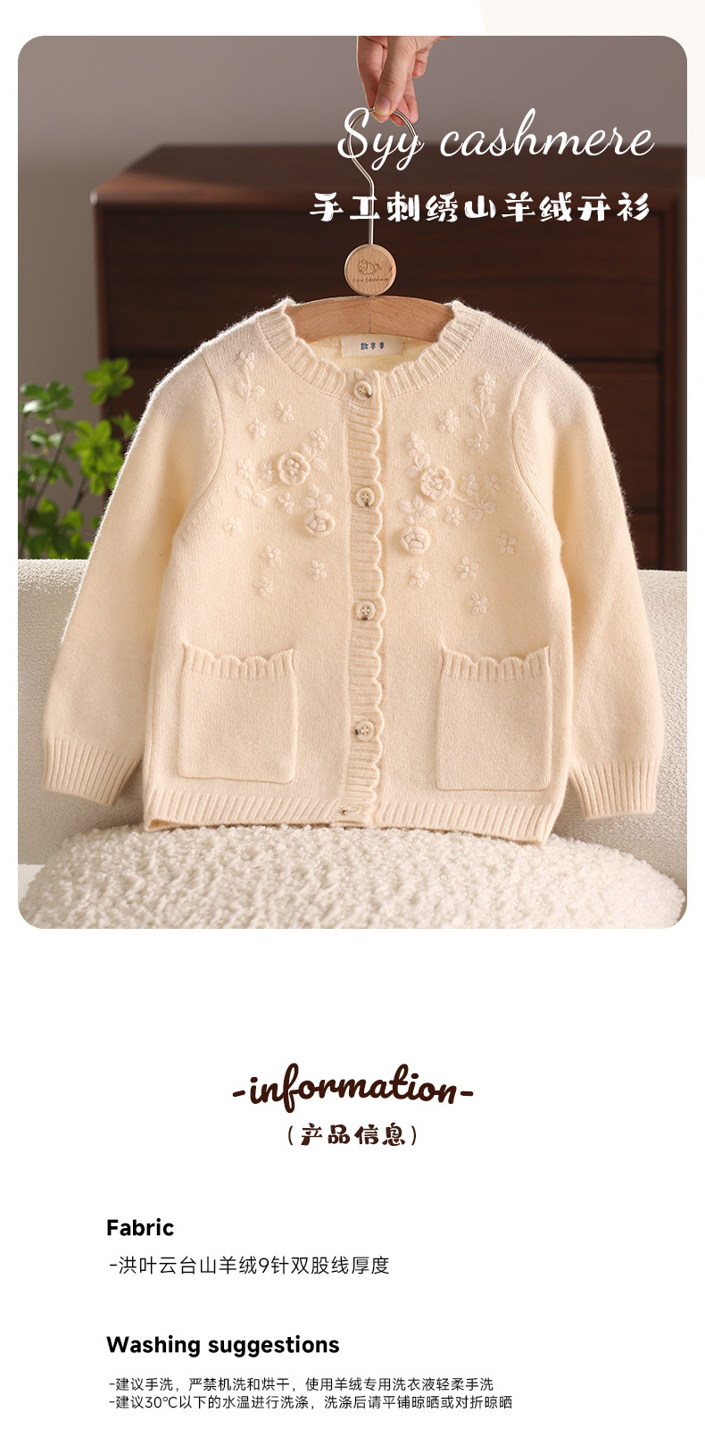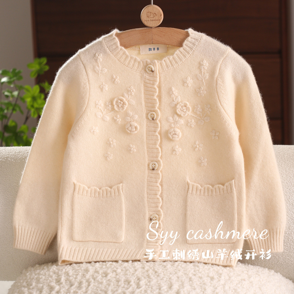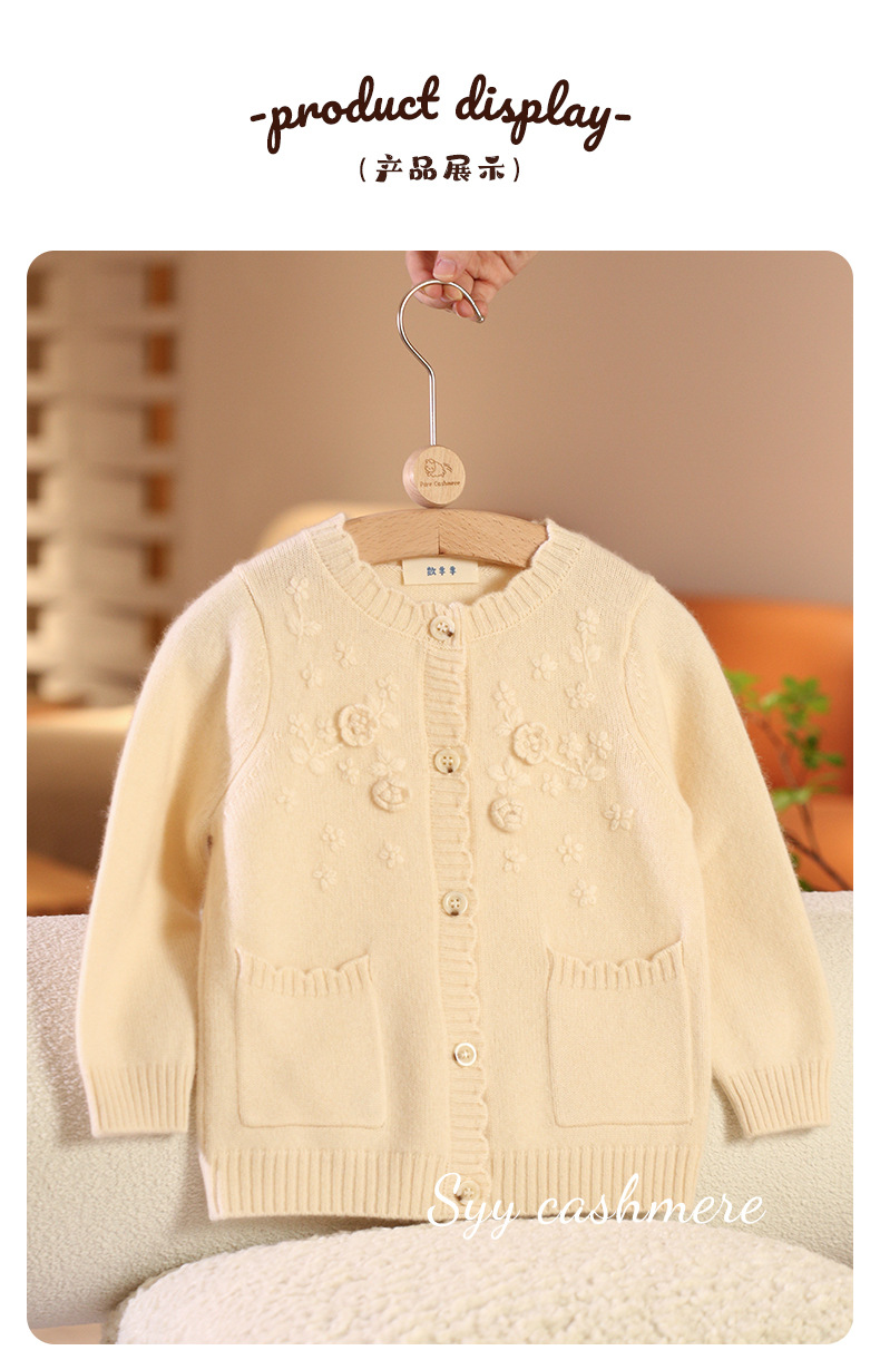양과 염소 가을과 겨울 소녀 아기 스테레오 크로 셰 스위트 레이스 칼라 순수 캐시미어 니트 스웨터 카디건스토어 가기
