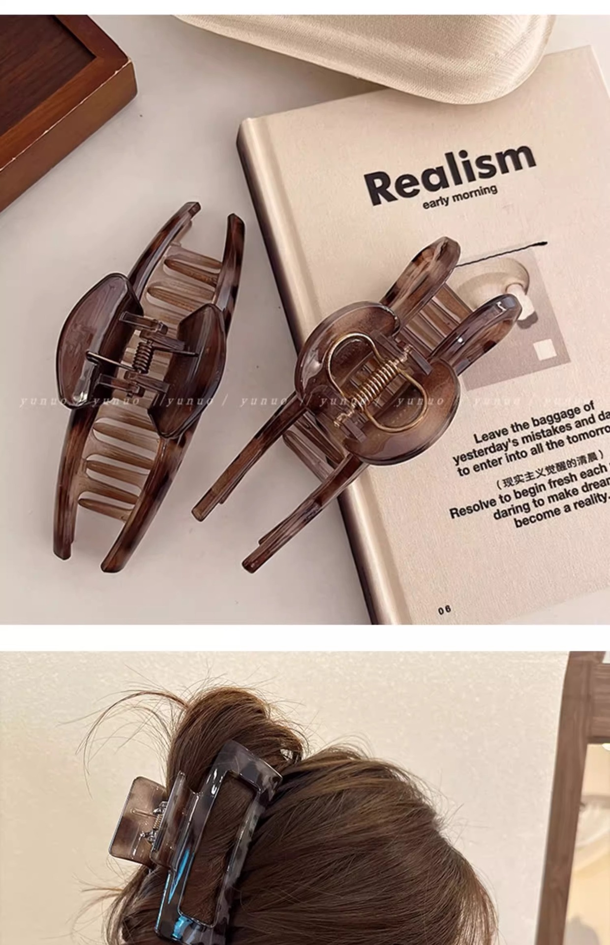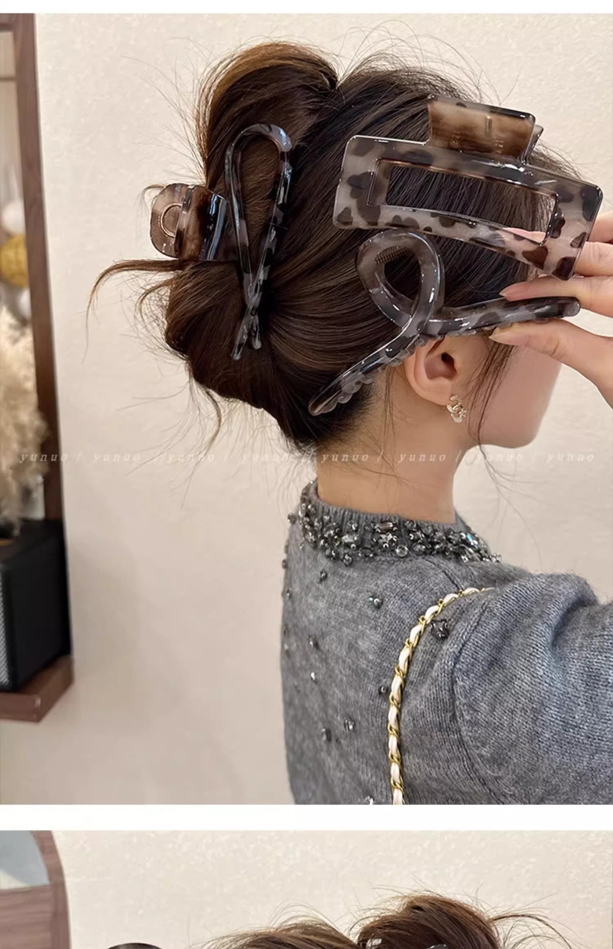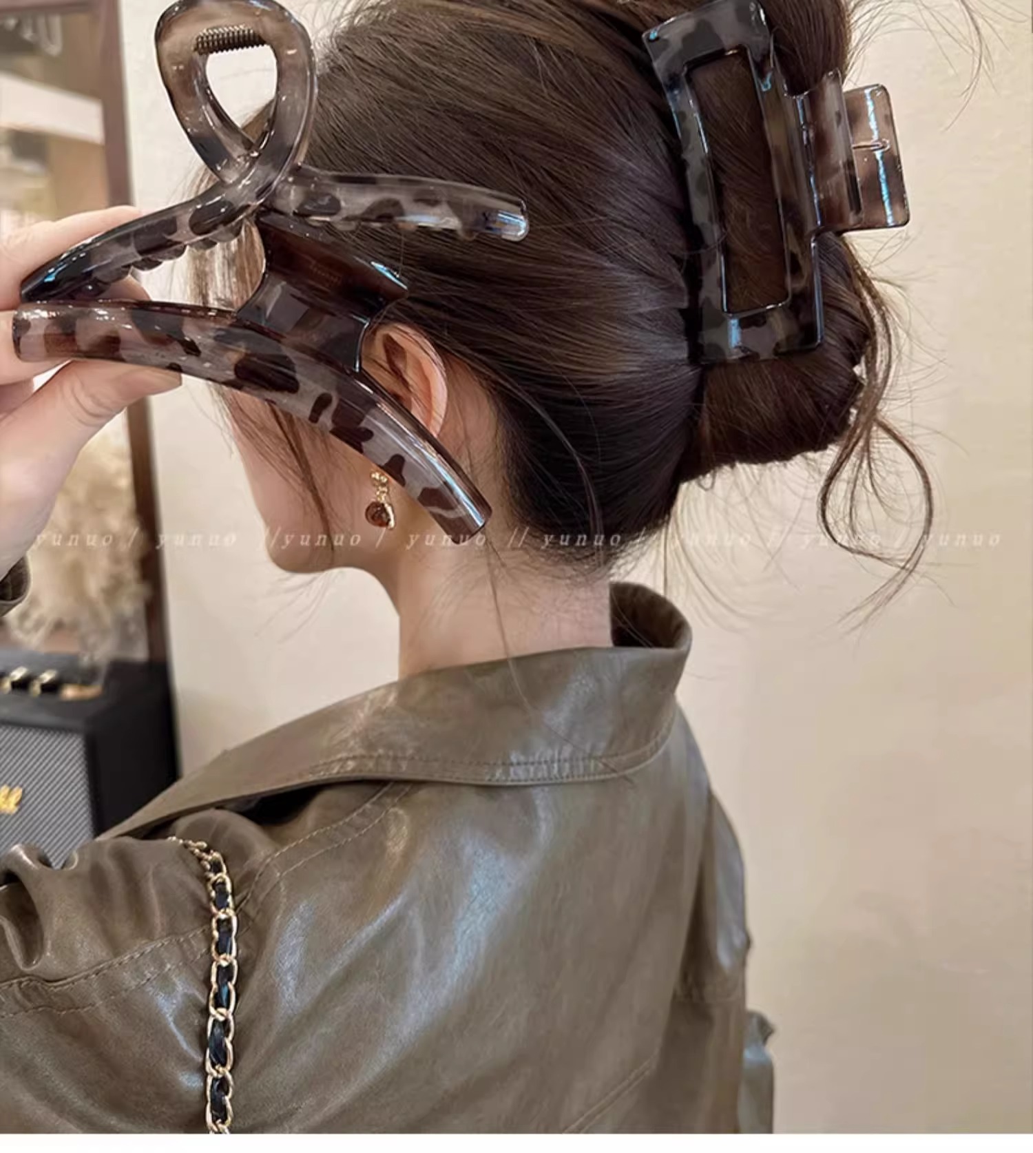 프랑스 스타일의 우아한 레오파드 무늬 헤어 멀티 헤어 클립 여성의 머리 하이 엔드 우아한 상어 클립 2024 새로운 잡아 클립