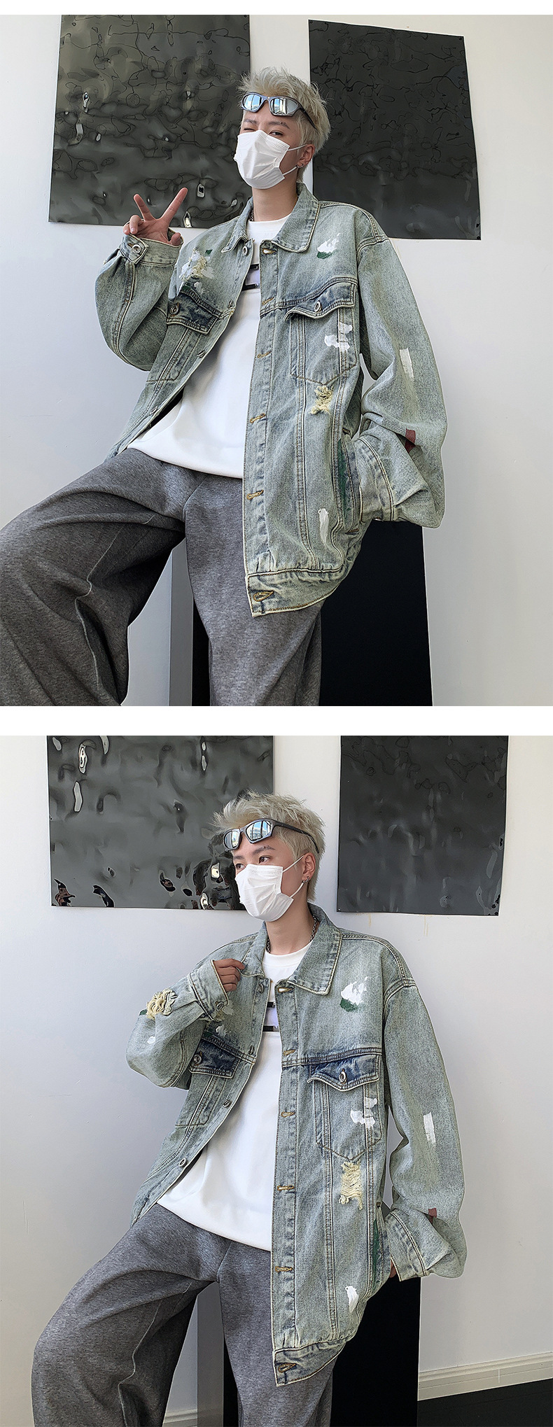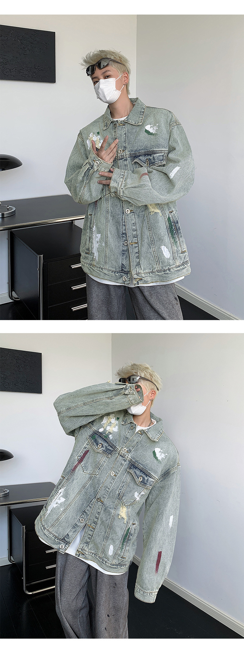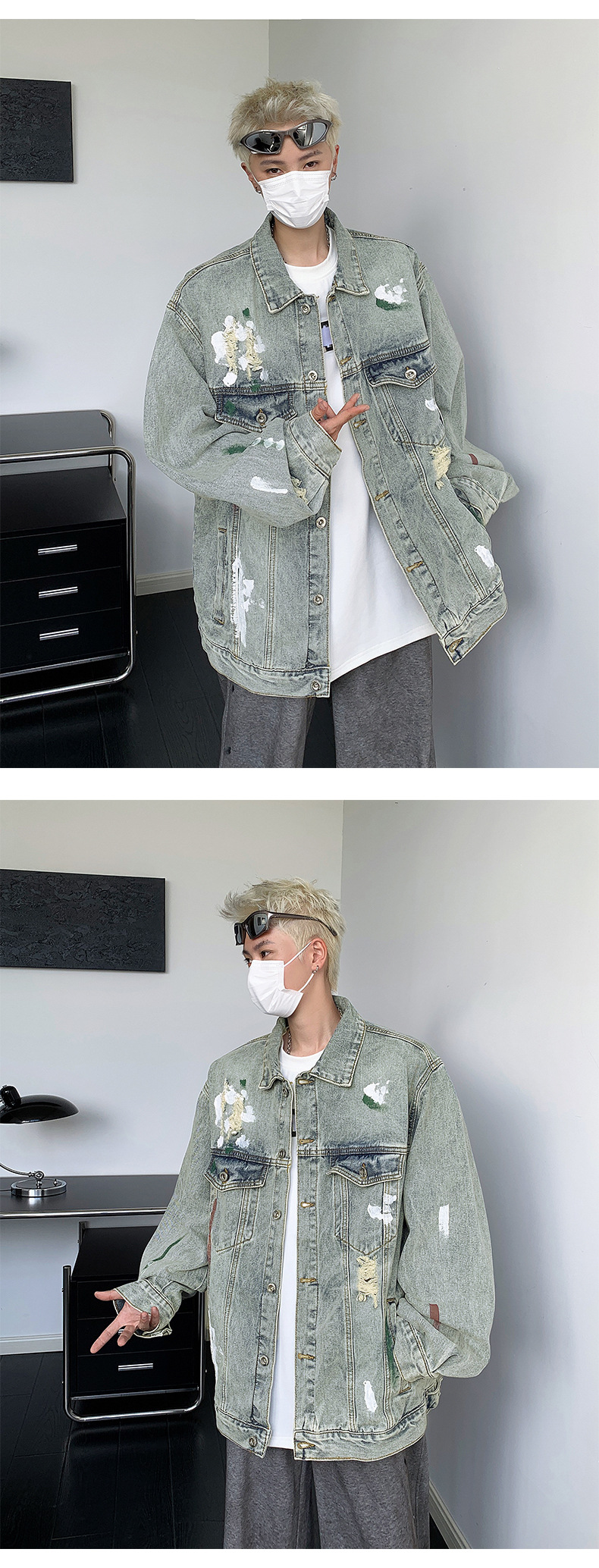 미국 스타일의 트렌디 한 브랜드 레트로 그린 느슨한 캐주얼 고난 디자인 센스 데님 셔츠 남성 자켓 홍콩 스타일 코트 탑