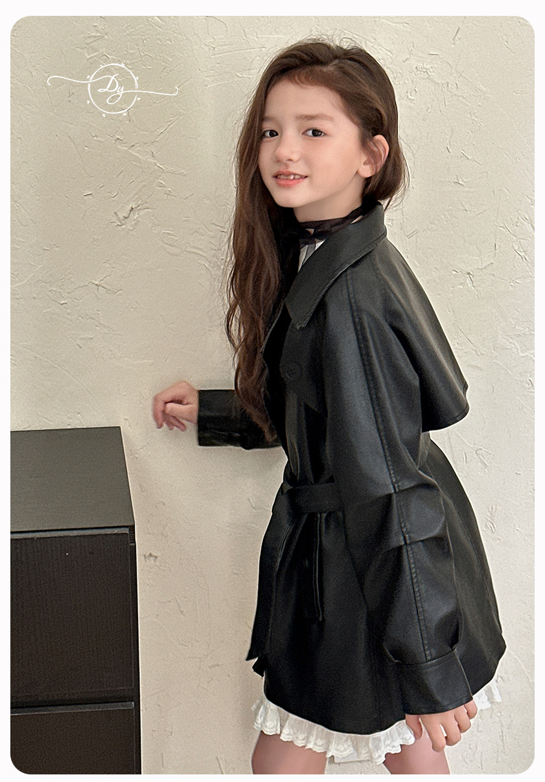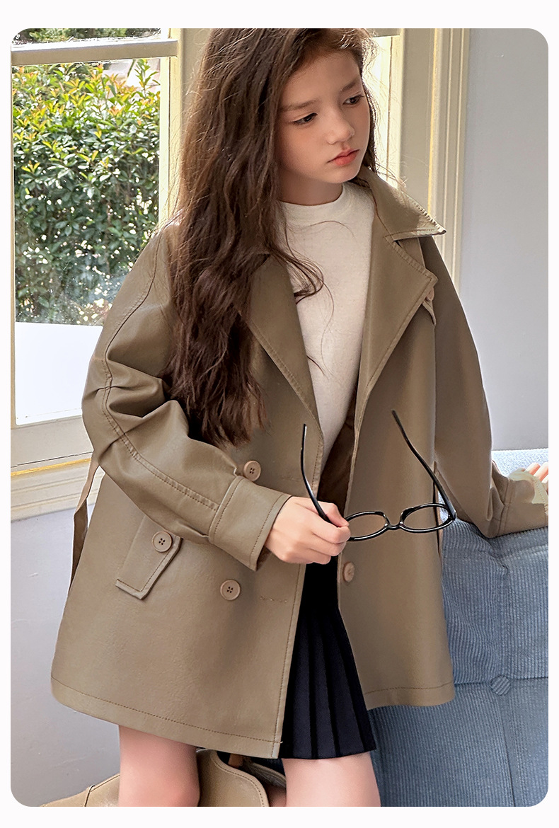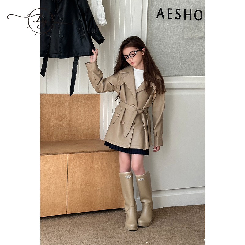 상루오 아동복 여아 가죽 자켓 2025 가을 신상 중대형 아동 영국풍 디자인 감각의 아동 중장형 코트