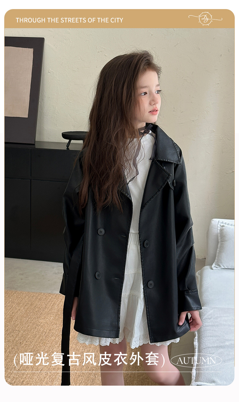 상루오 아동복 여아 가죽 자켓 2025 가을 신상 중대형 아동 영국풍 디자인 감각의 아동 중장형 코트스토어 가기