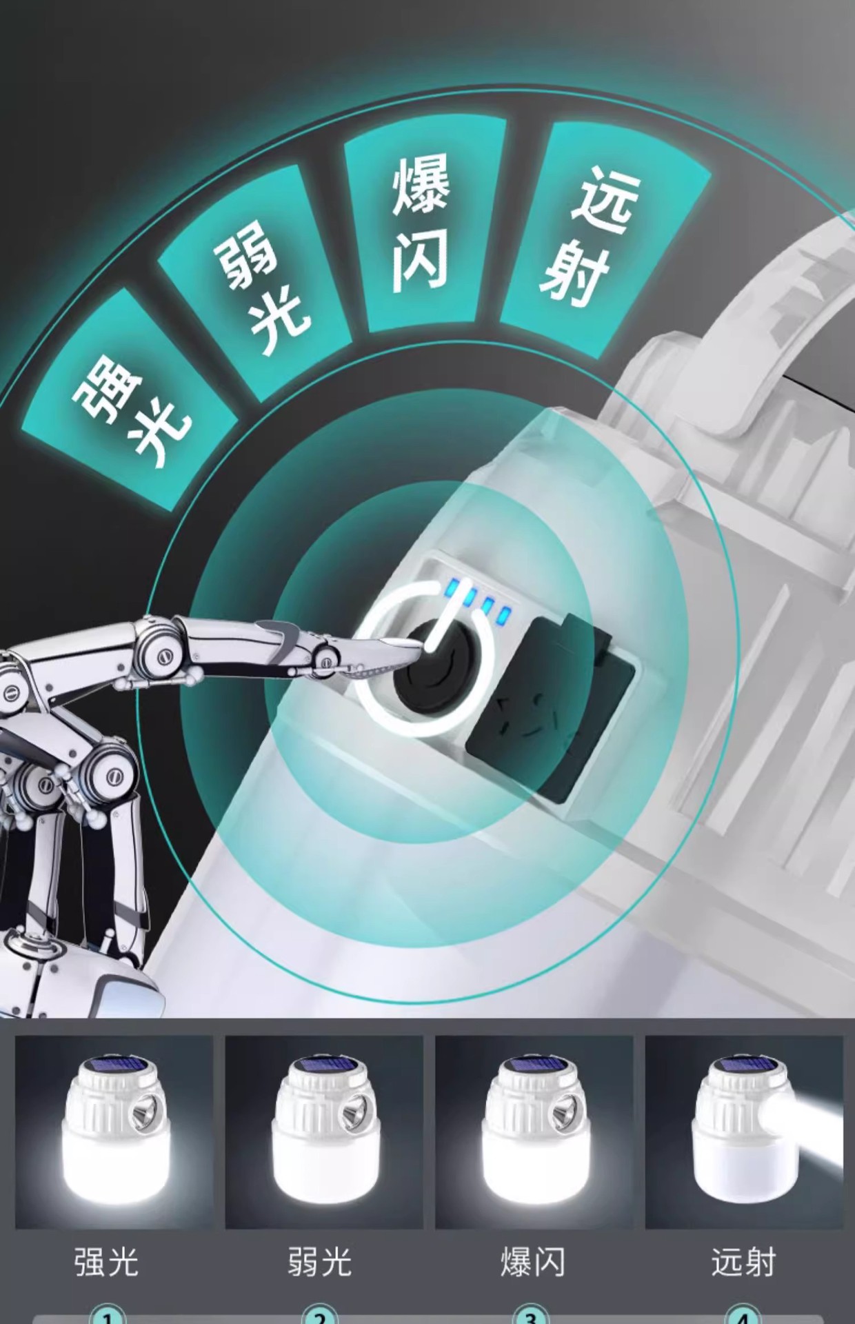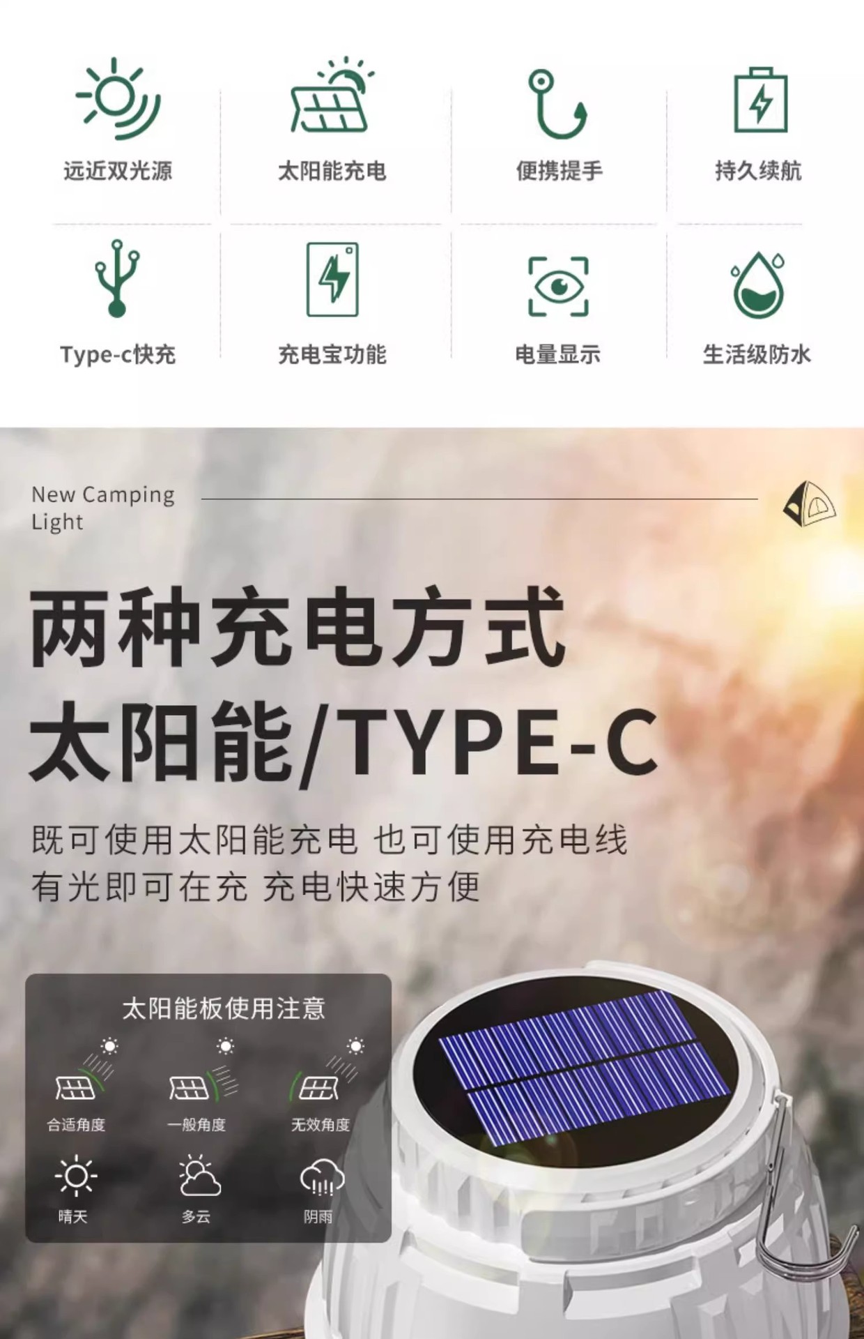 • 업그레이드 - 29800w, 배터리 수명 100시간, 듀얼 광원 + 태양광