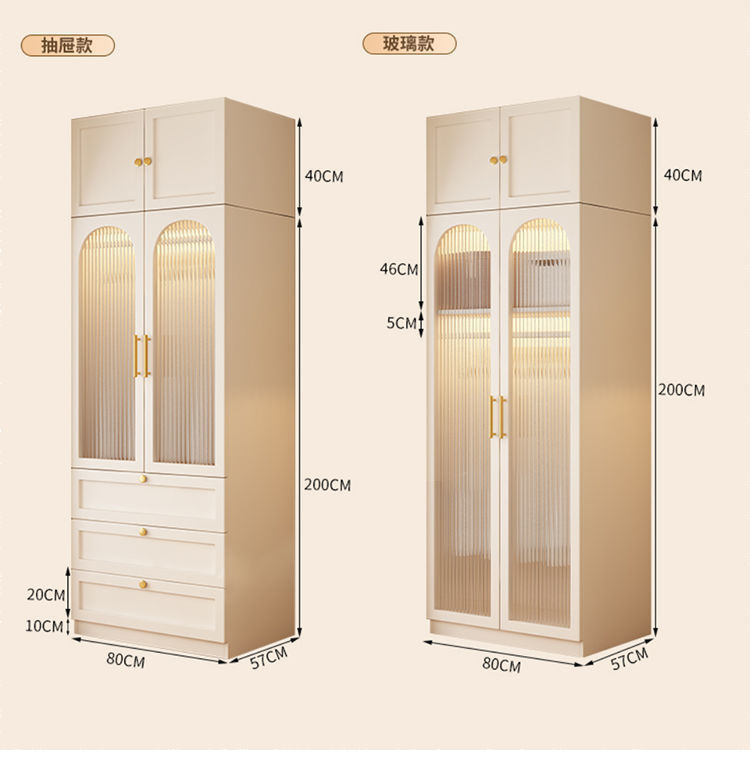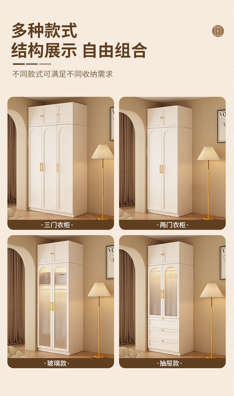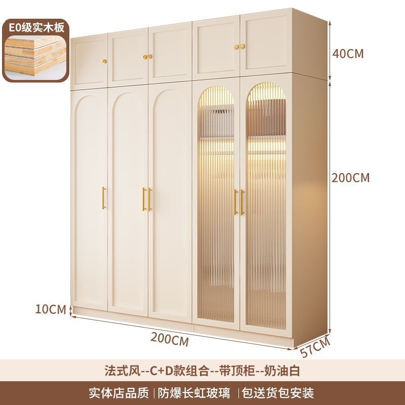 옷장 홈 침실 프랑스 크림 스타일 솔리드 우드 캐비닛 간단한 유리 도어 스토리지 라이트 럭셔리 옷장 맞춤형스토어 가기