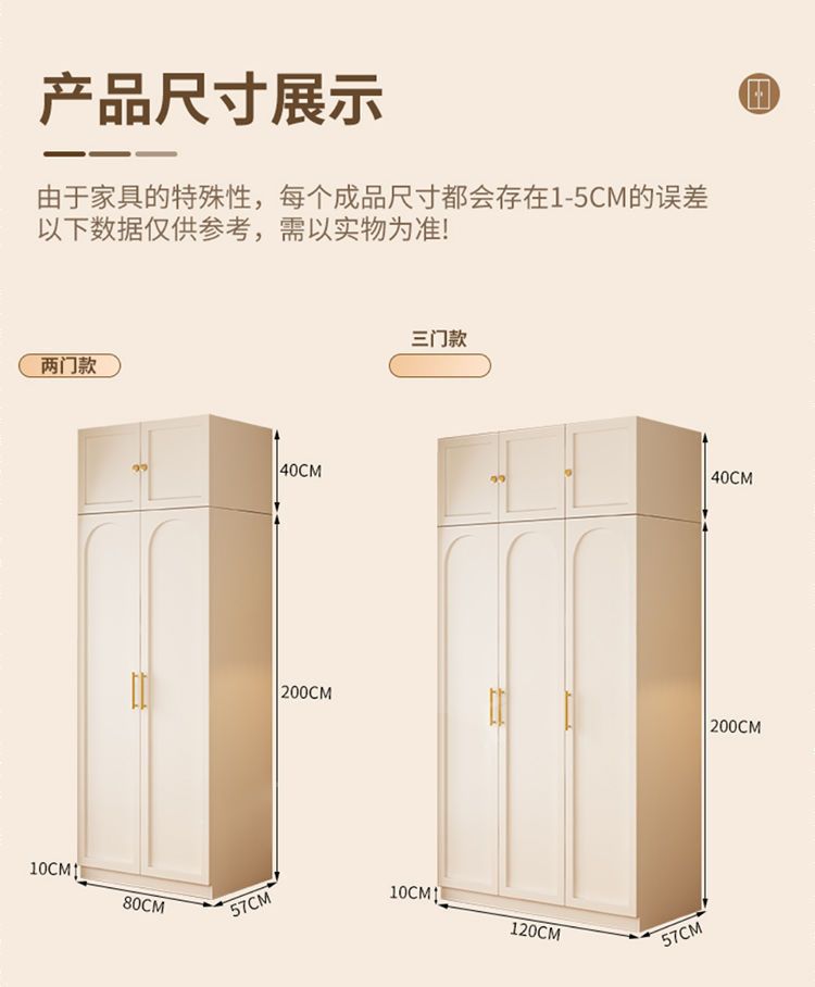 • 모델 B 2도어 옷장 서랍 3개 80x200