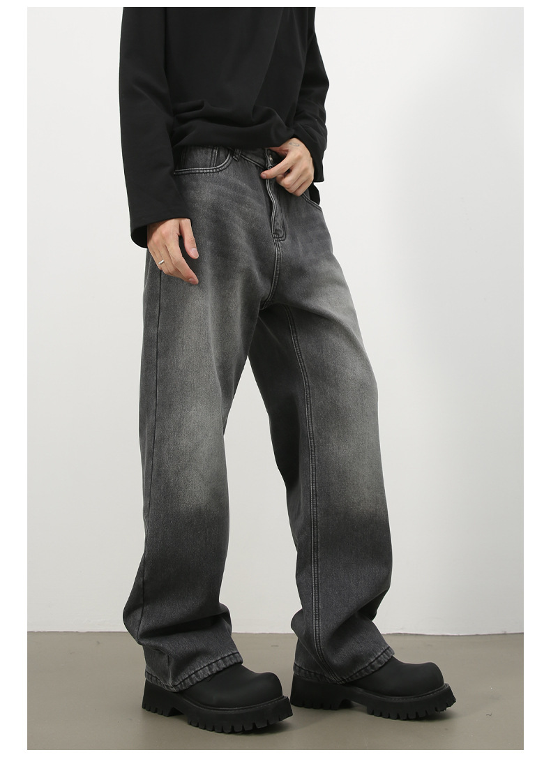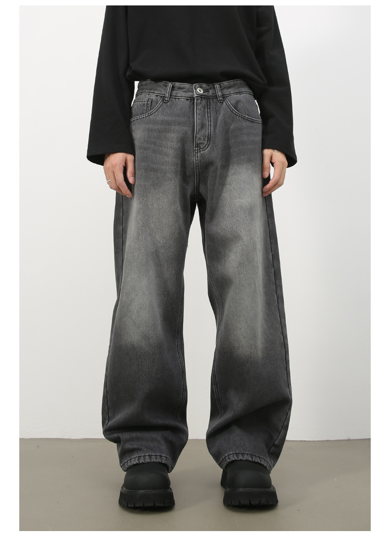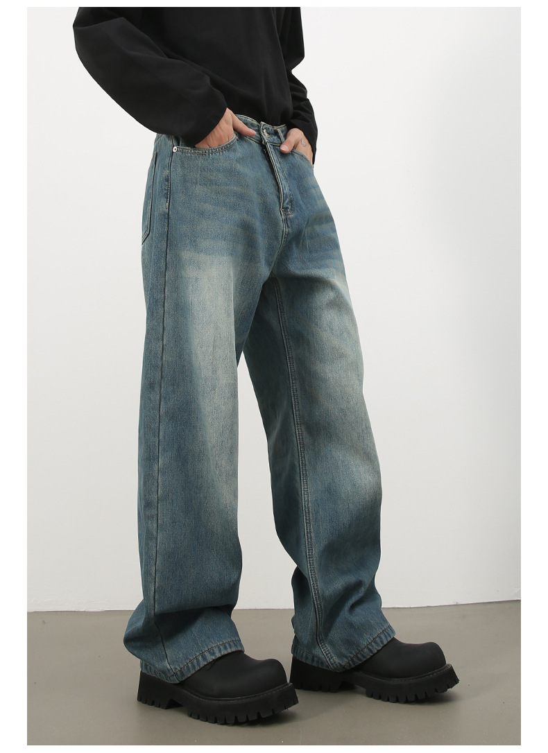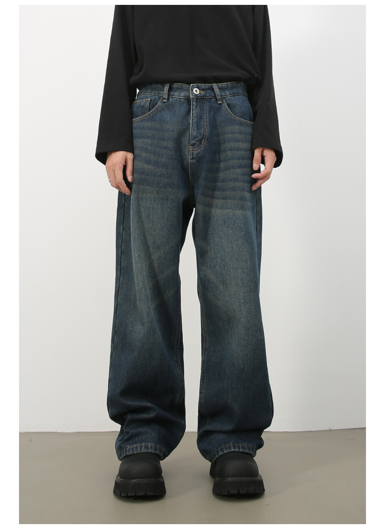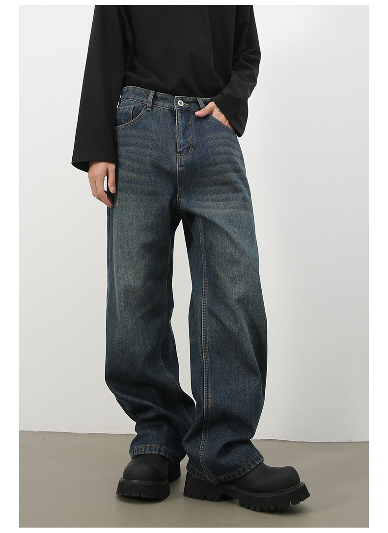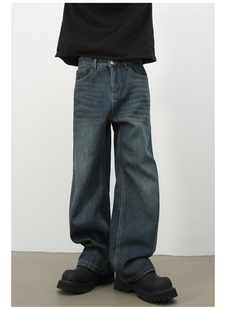 Nirben 데님 | 가을과 겨울 새로운 기모 청바지 남성용 미국 느슨한 스트레이트 인 조수 브랜드 넓은 다리 바지스토어 가기