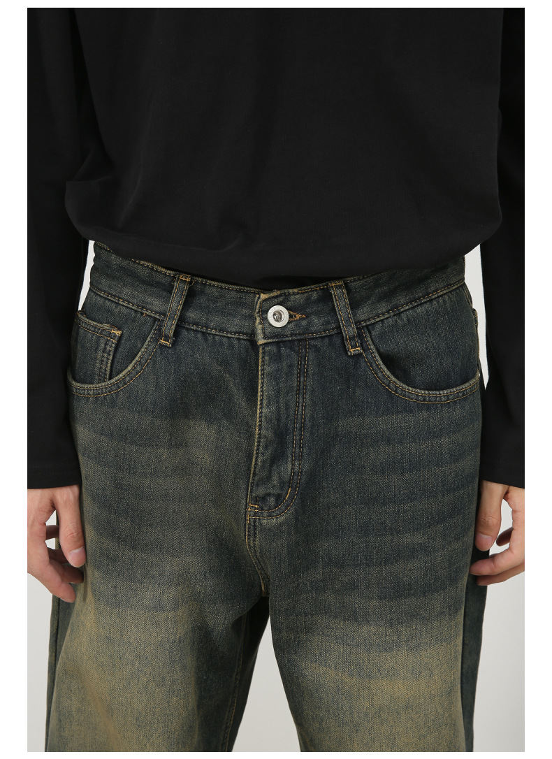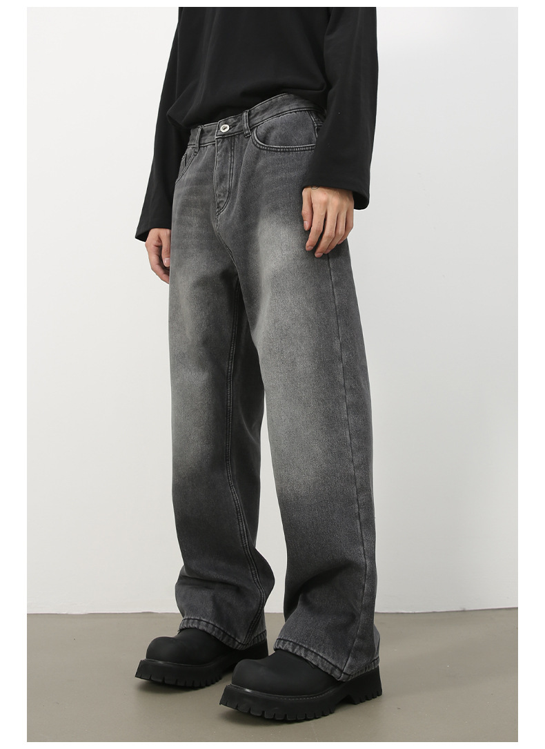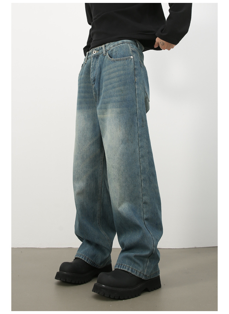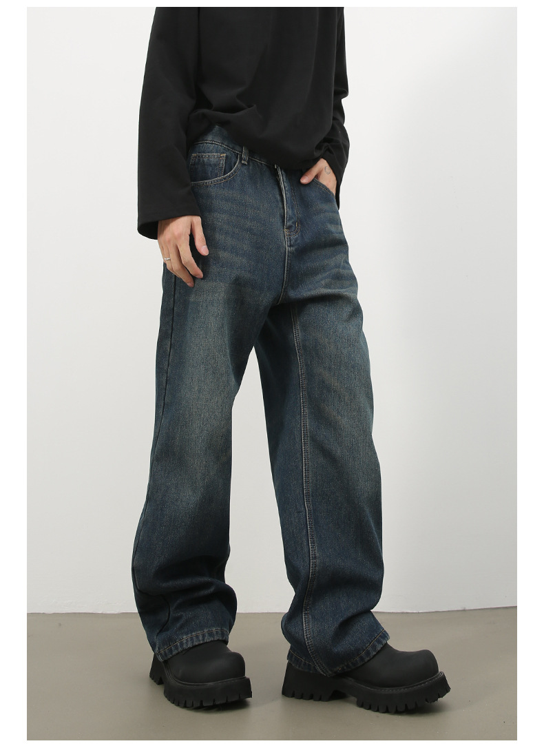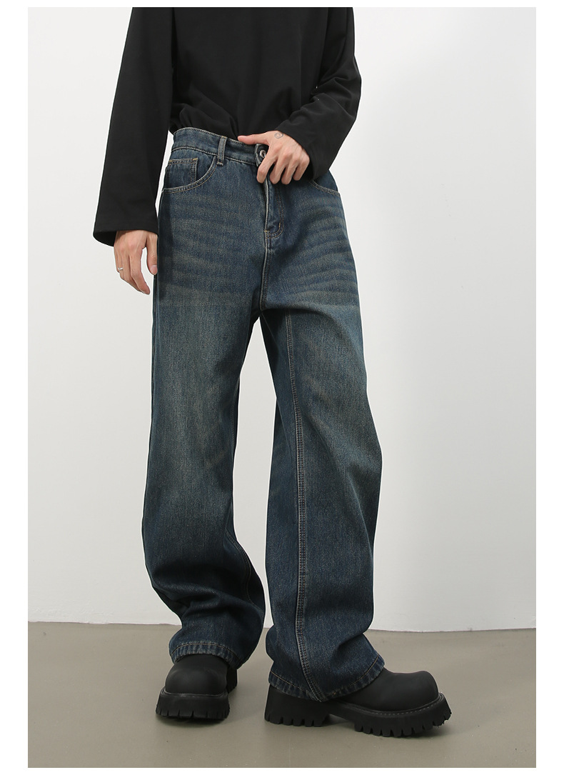 Nirben 데님 | 가을과 겨울 새로운 기모 청바지 남성용 미국 느슨한 스트레이트 인 조수 브랜드 넓은 다리 바지스토어 가기