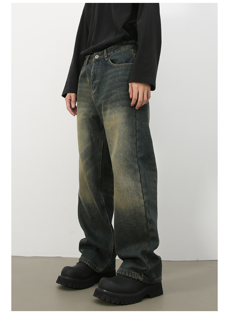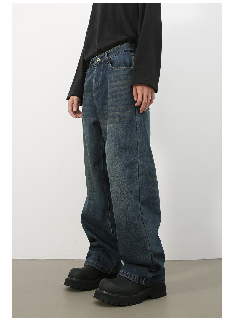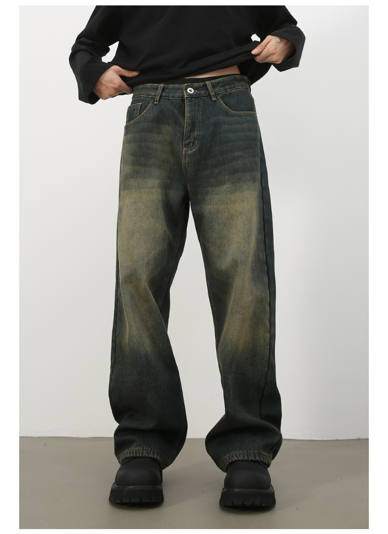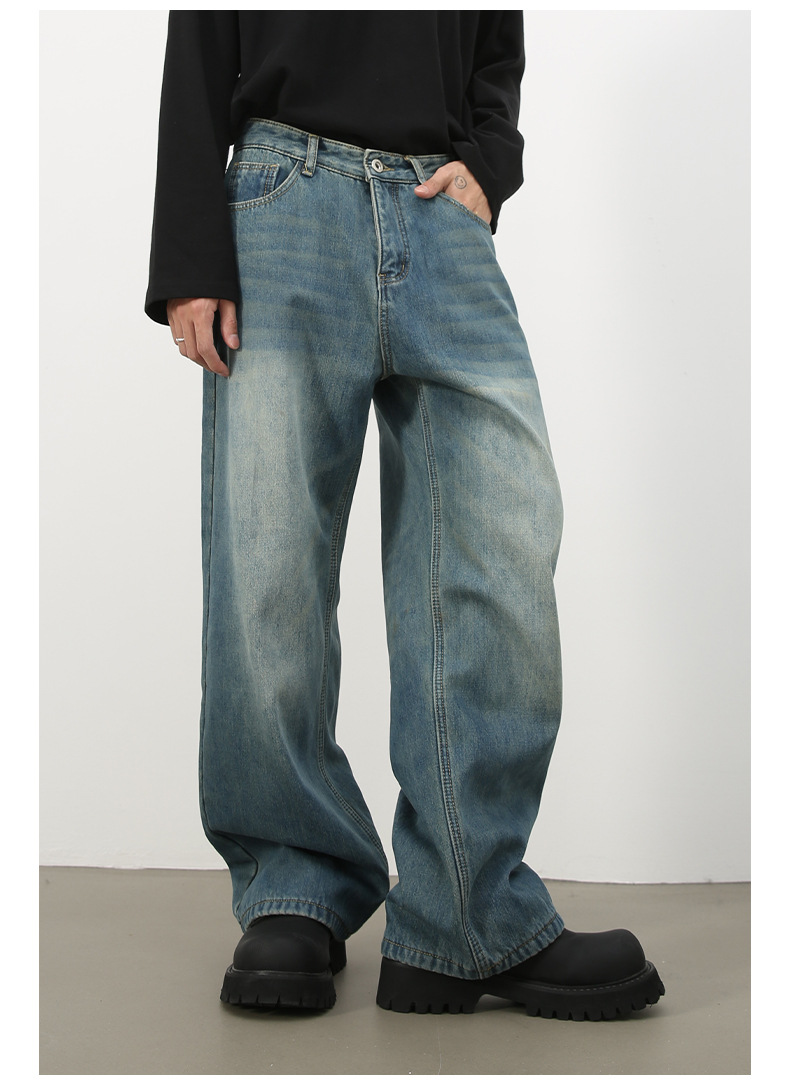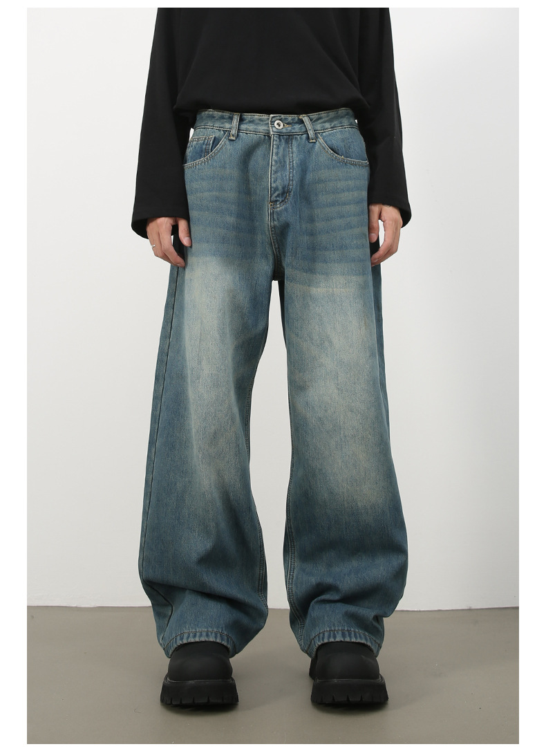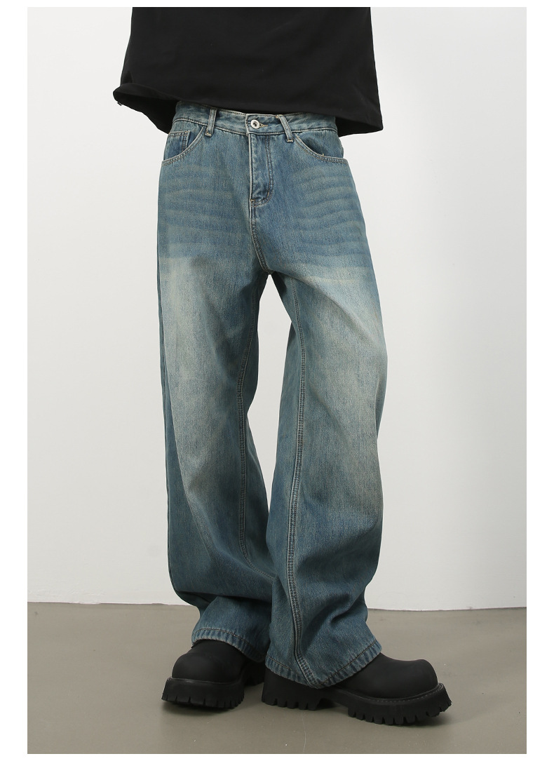Nirben 데님 | 가을과 겨울 새로운 기모 청바지 남성용 미국 느슨한 스트레이트 인 조수 브랜드 넓은 다리 바지스토어 가기