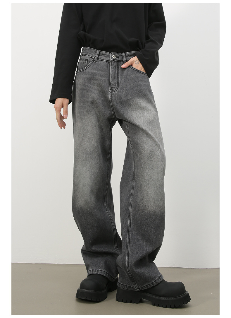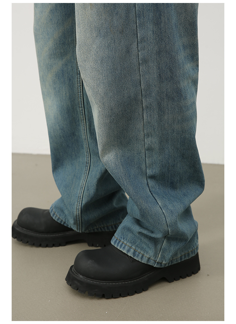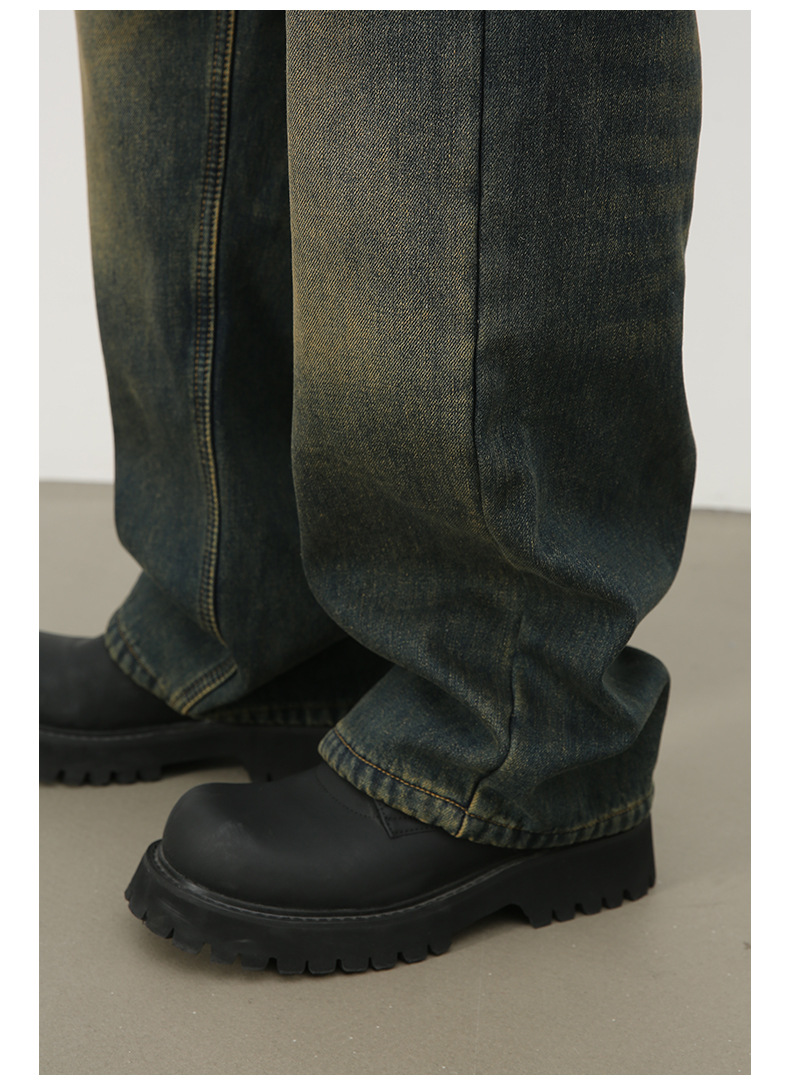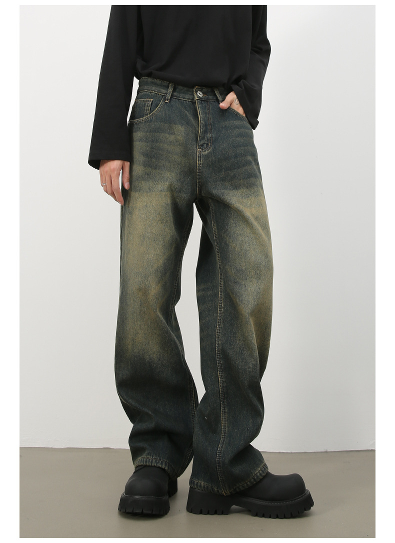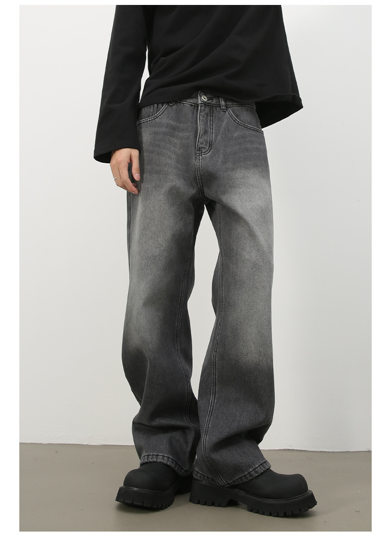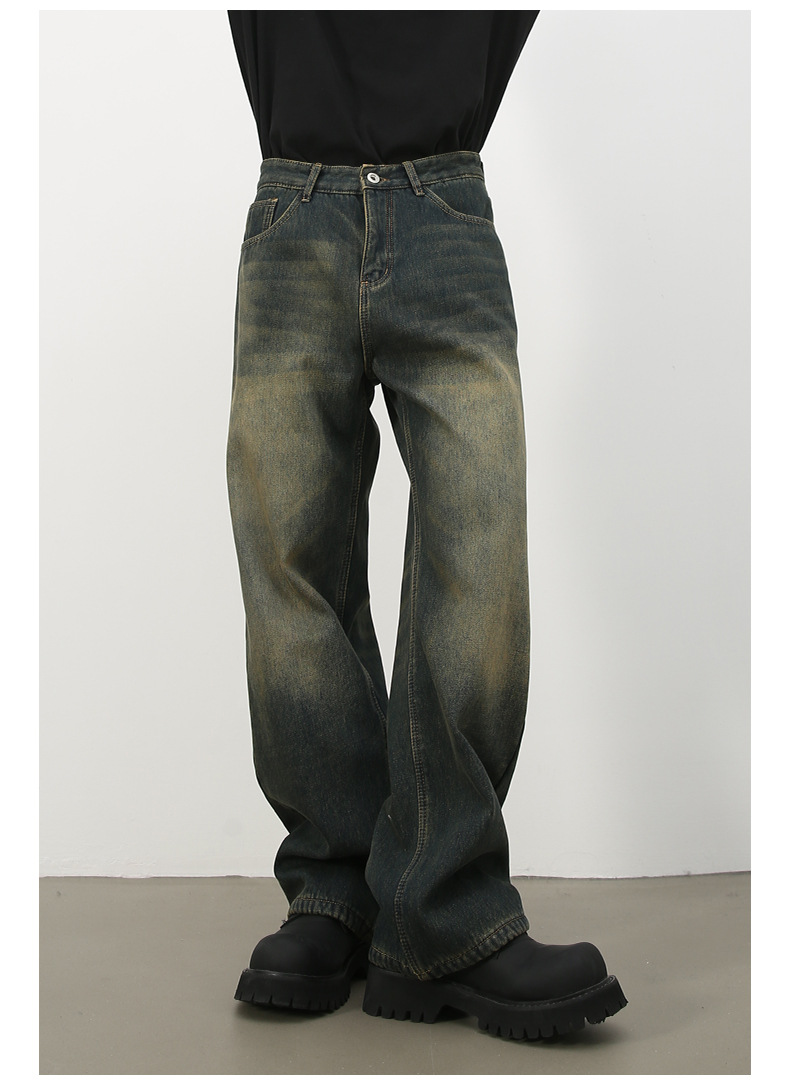 Nirben 데님 | 가을과 겨울 새로운 기모 청바지 남성용 미국 느슨한 스트레이트 인 조수 브랜드 넓은 다리 바지스토어 가기