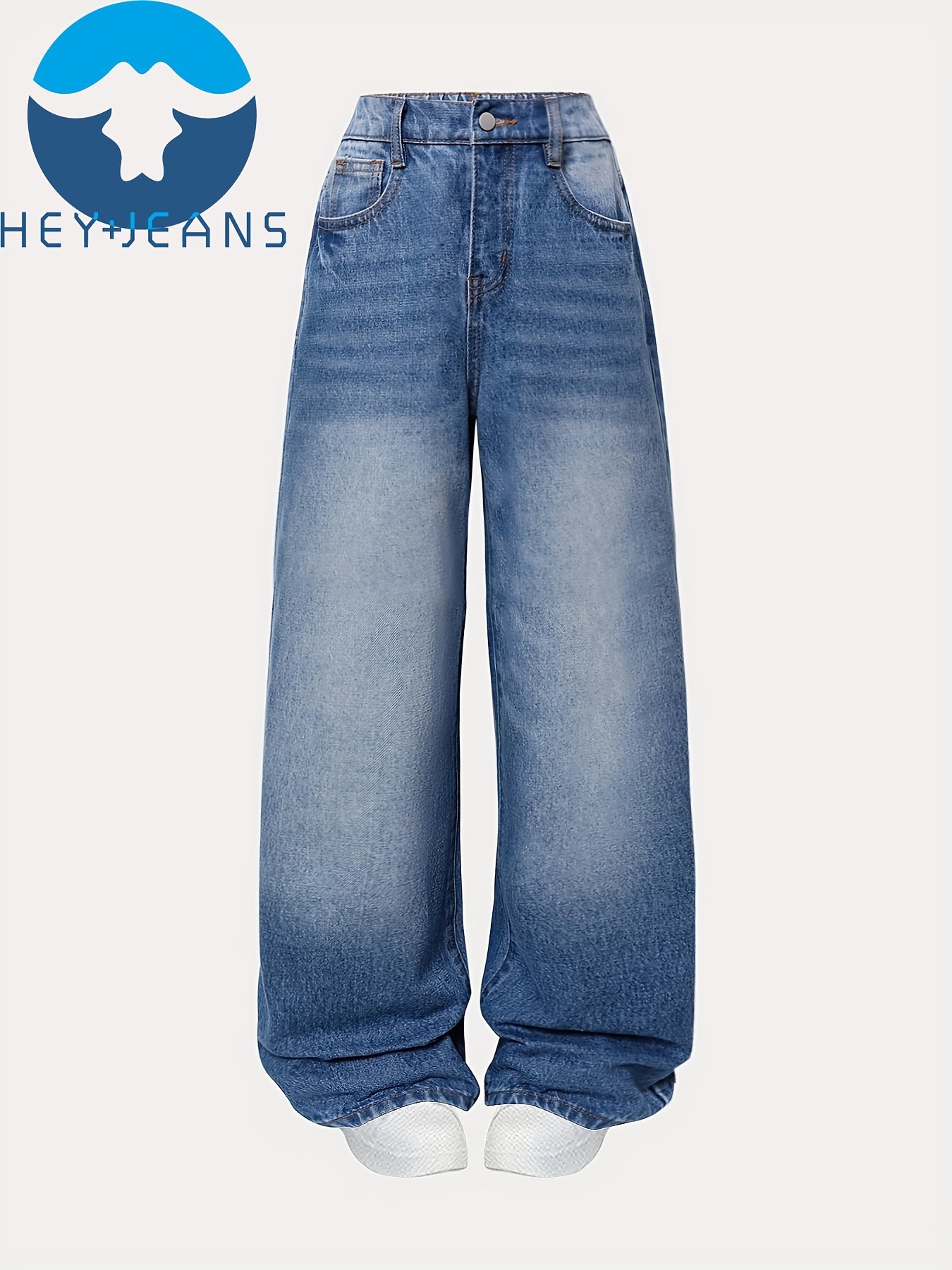 유럽 및 미국 아마존, 알리익스프레스 전용, 청소년 소녀용 봄 가을 데님 와이드 팬츠, 하이웨이스트 디자인스토어 가기