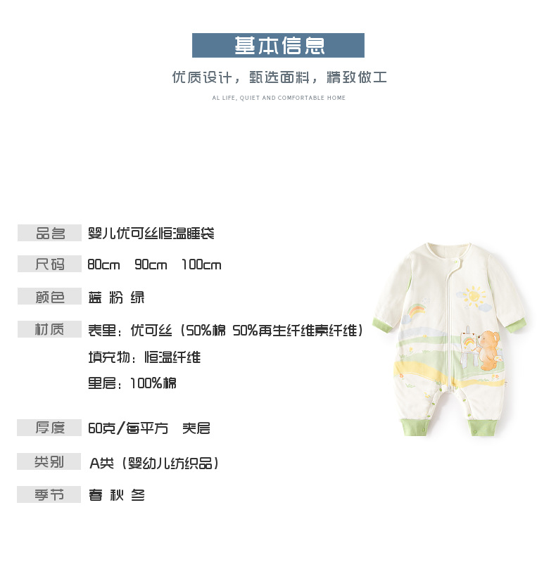 아기의 지속적인 온도 슬리핑 백 가을 및 겨울 아기의 다리 분할 잠옷 용 면화 신생아 지퍼 다기능 킥 방지 퀼트스토어 가기