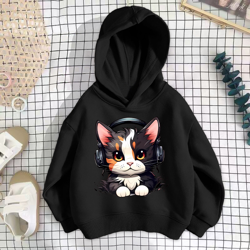 • 검은색 이어폰 고양이 스웨트셔츠 얇은 스타일