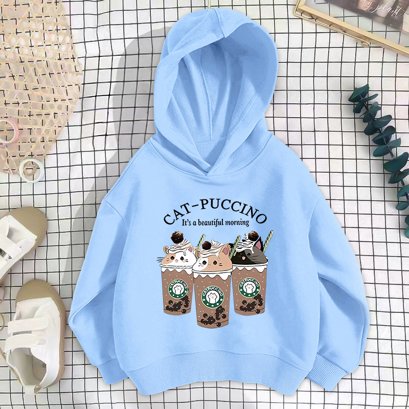 • 블루 밀크티 세 마리 고양이 스웨트셔츠 얇은 스타일
