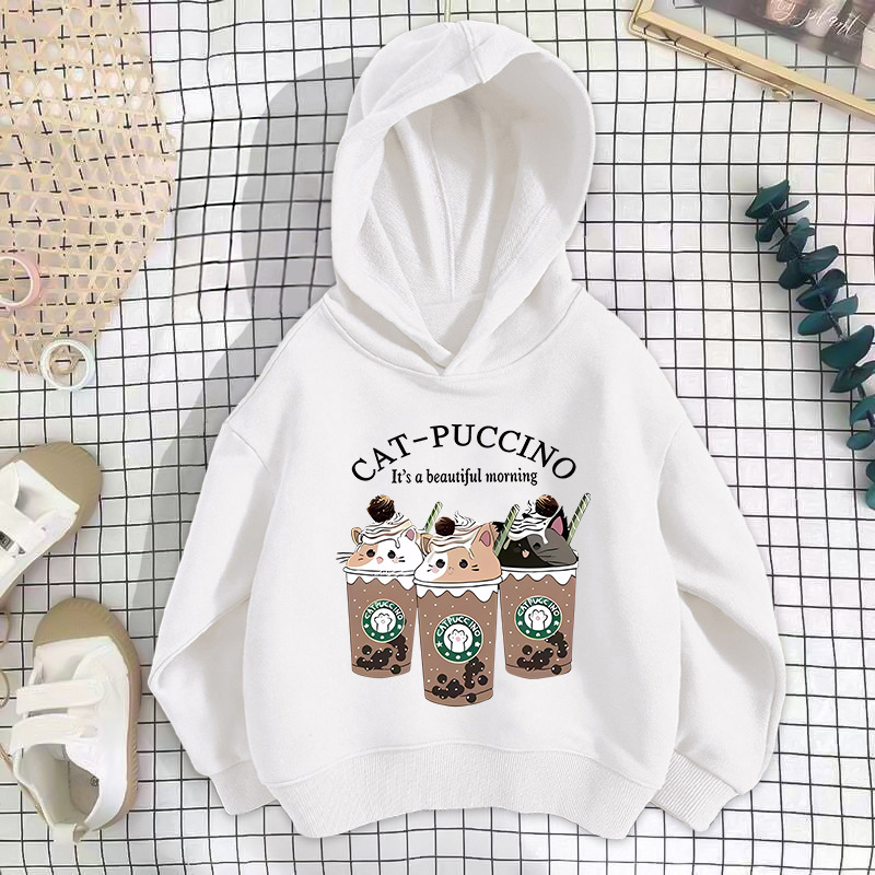 • 화이트 밀크티 세 마리 고양이 스웨트셔츠 얇은 스타일