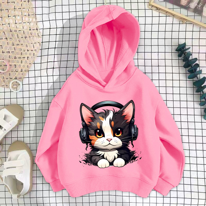 • 얇은 핑크색 이어폰 고양이 스웨트셔츠