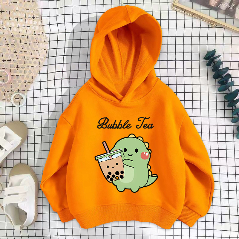 • 오렌지 밀크티 공룡 스웨트셔츠 얇은 스타일