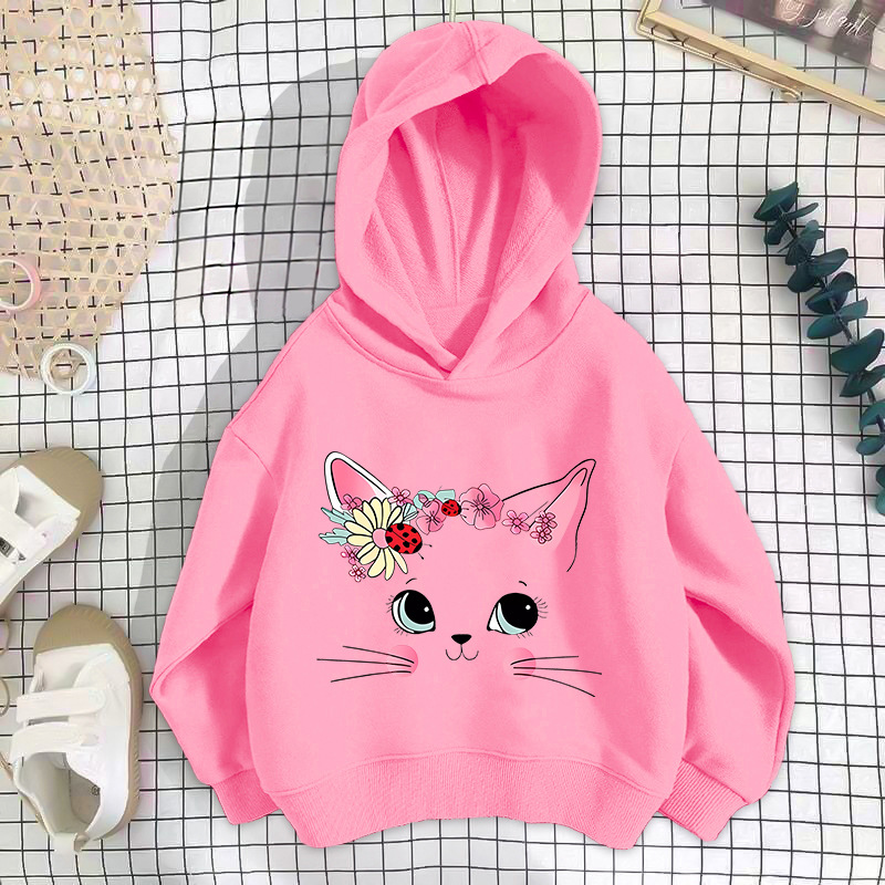 • 핑크 무당벌레 고양이 스웨트셔츠 얇은 스타일