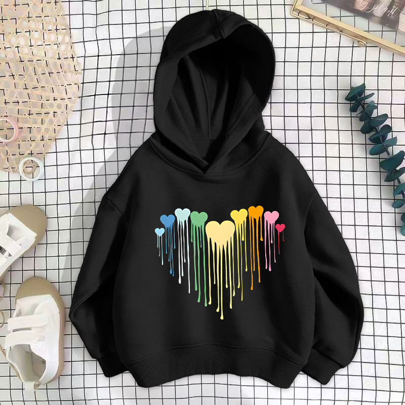 • 블랙 컬러풀 러브 스웨트셔츠 얇은 스타일