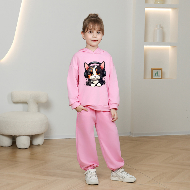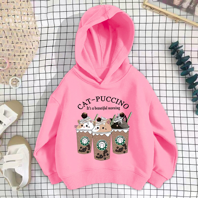 • 핑크 밀크티 세 마리 고양이 스웨트셔츠 얇은 스타일