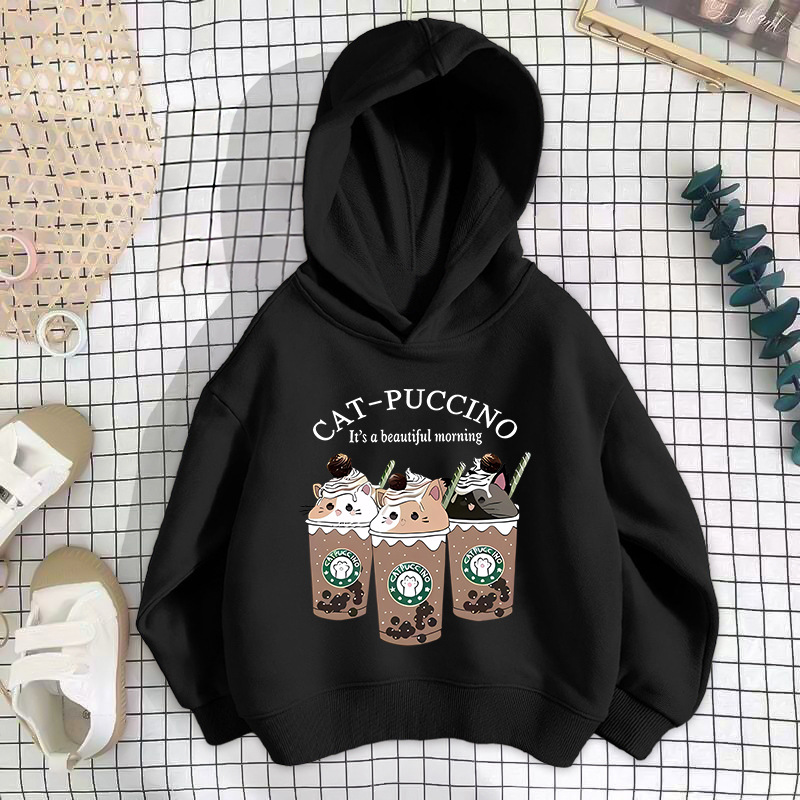 • 블랙 밀크티 세 마리 고양이 스웨트셔츠 얇은 스타일