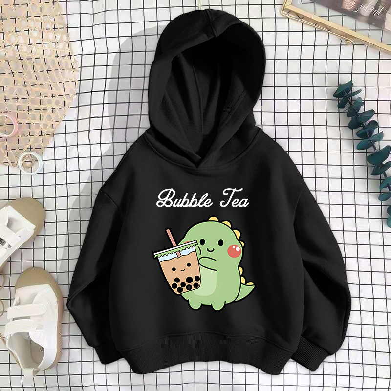 • 블랙 밀크티 공룡 스웨트셔츠 얇은 스타일