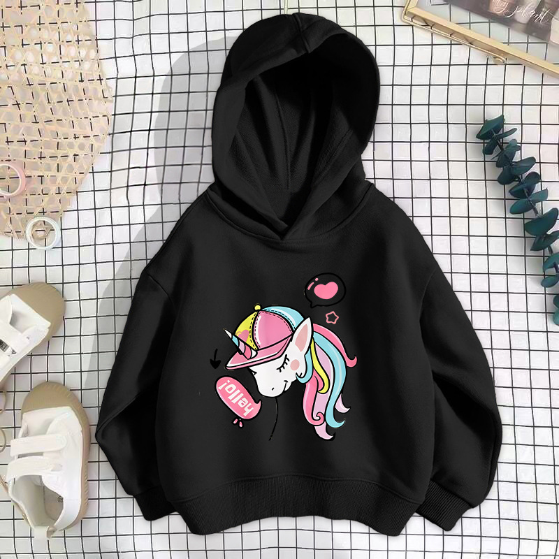 • 검은색 모자 말 스웨트셔츠 얇은 스타일