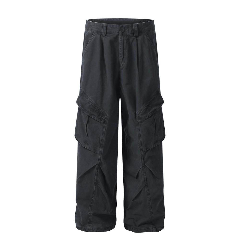 바이브 패션 브랜드 바지 남성용 워시 오래된 주름 디자인 틈새 느슨한 와이드 레그 스트레이트 바지스토어 가기