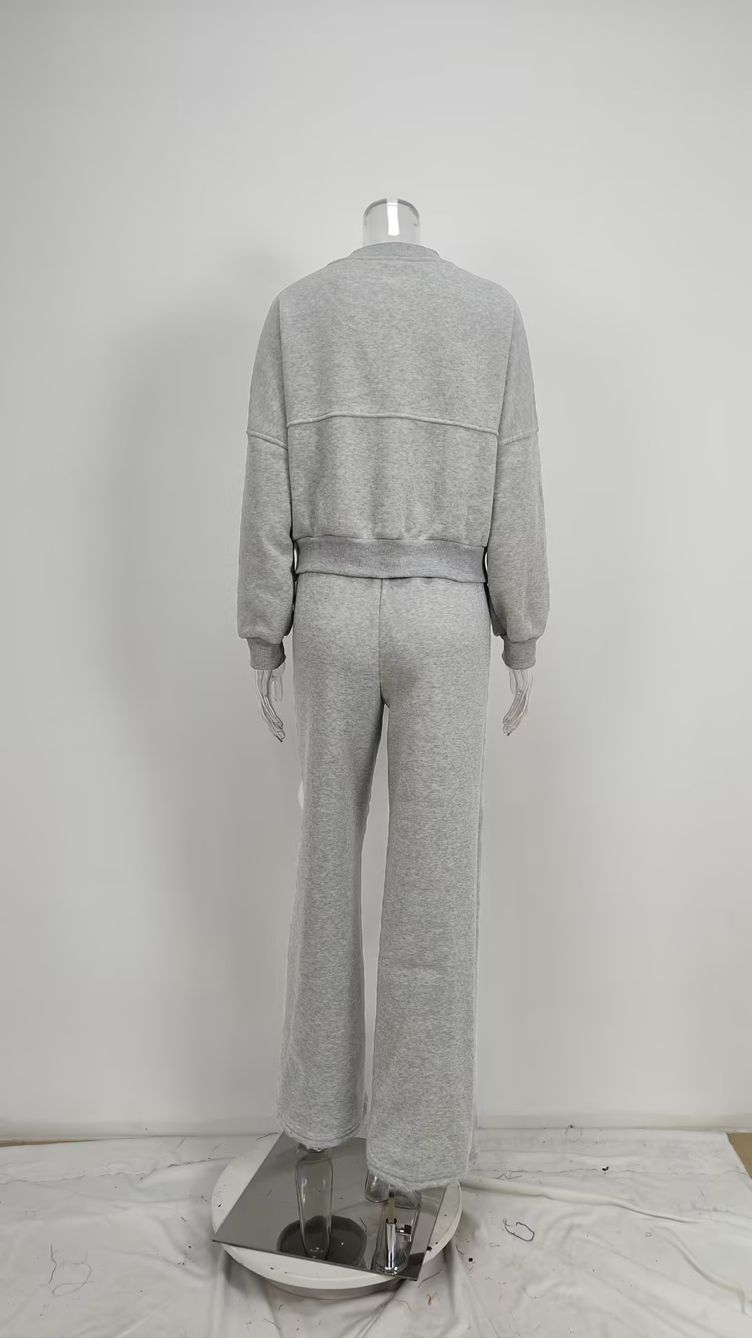 2025 유럽과 미국의 여성 의류 세트 패션 솔리드 컬러 캐주얼 루즈 스트리트 스포츠 스웨트 슈트 여성 투피스 세트 661