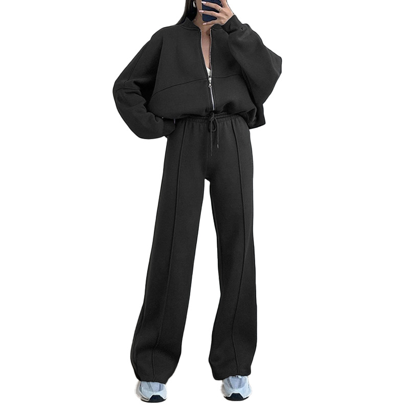 2025 유럽과 미국의 여성 의류 세트 패션 솔리드 컬러 캐주얼 루즈 스트리트 스포츠 스웨트 슈트 여성 투피스 세트 661스토어 가기