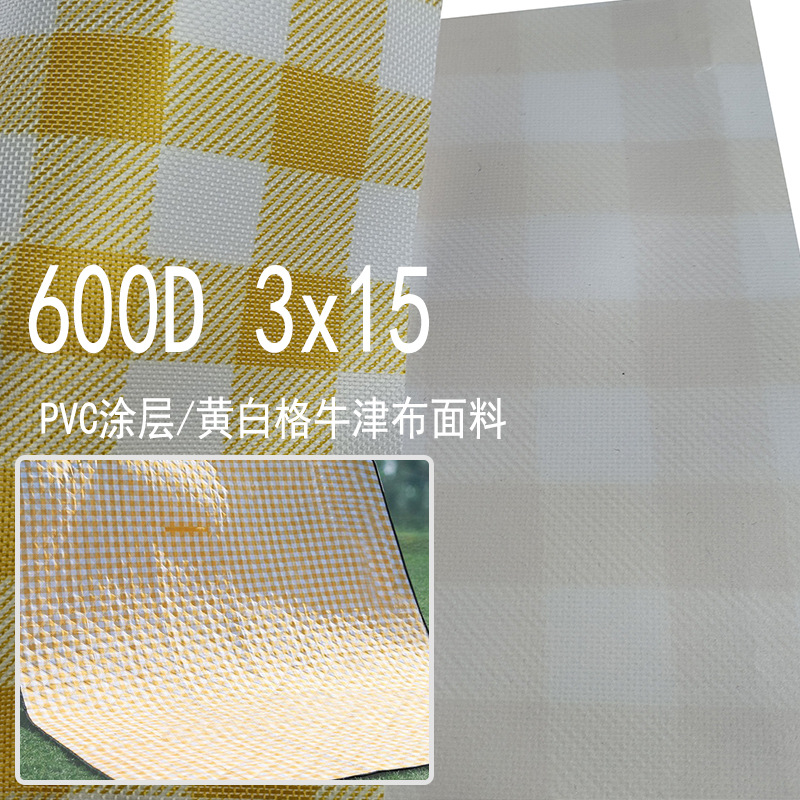 공장 스팟 600D 노란색과 흰색 격자 무늬 2m 도어 폭 3x15 피크닉 매트 가방용 옥스포드 천 패브릭 인쇄 PVC