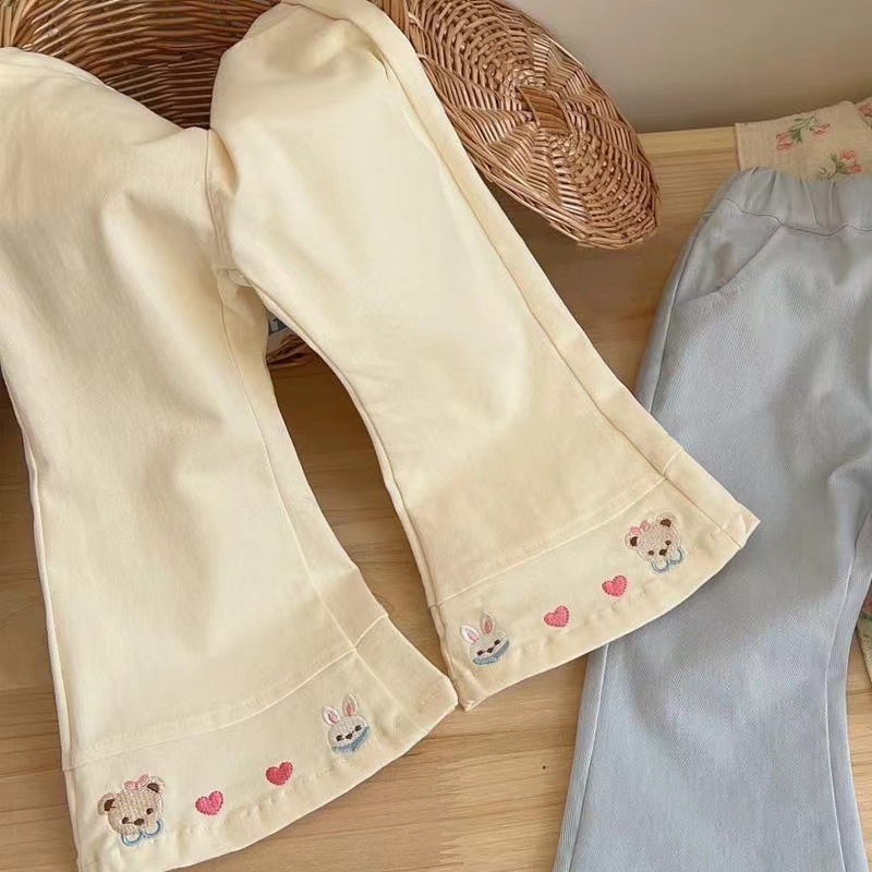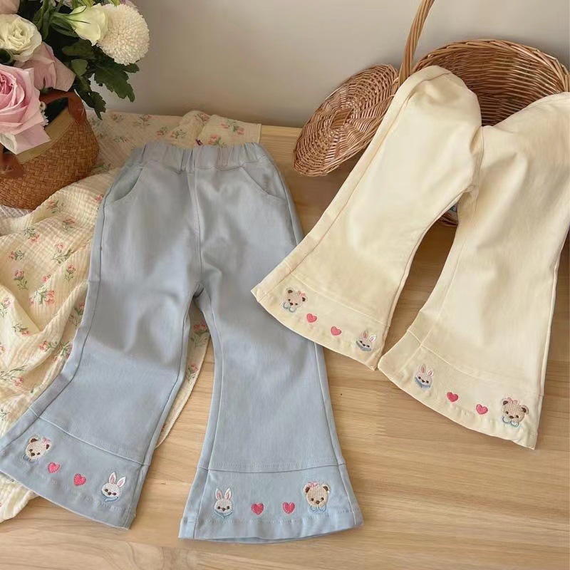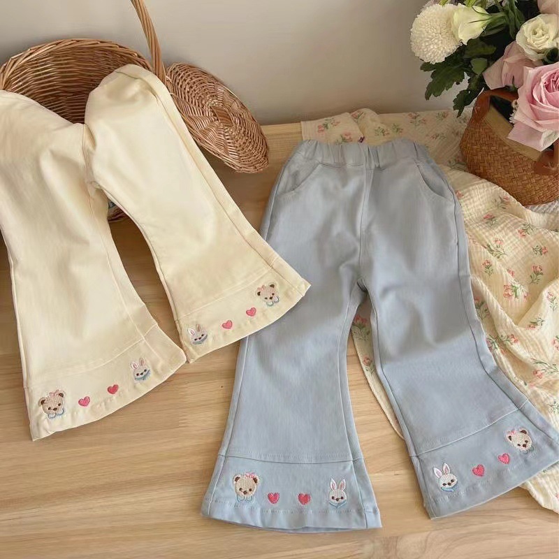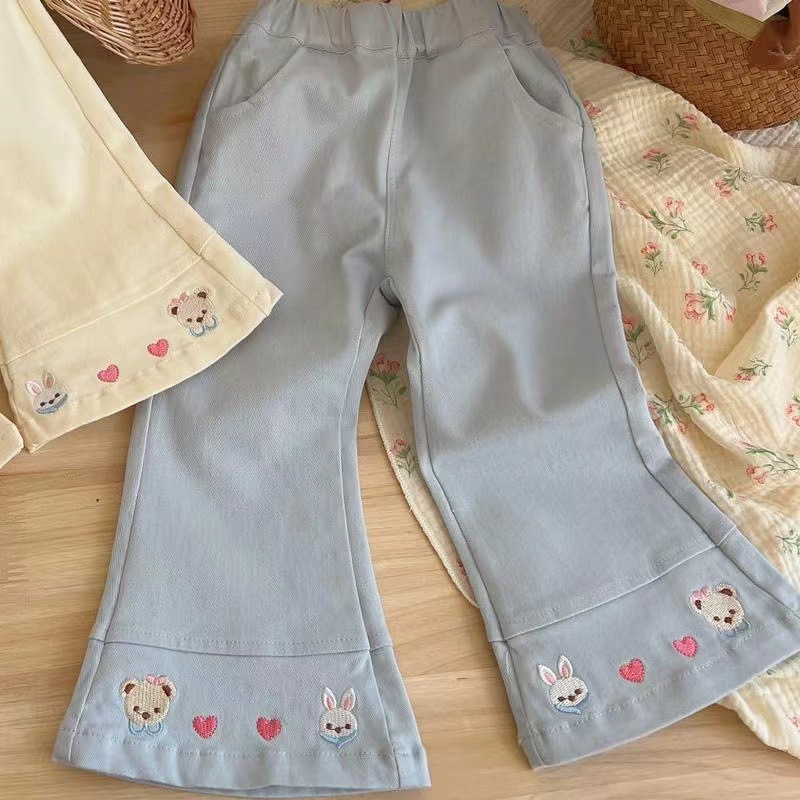 소녀 바지 2024 봄 한국 스타일 어린이 캐주얼 바지 소녀 패션 만화 자수 올매치 플래 바지