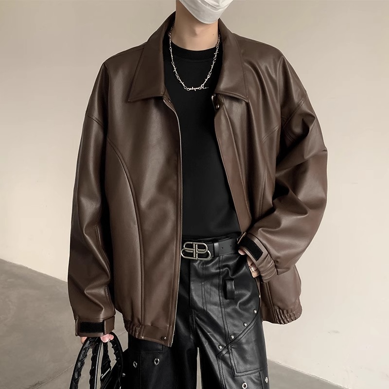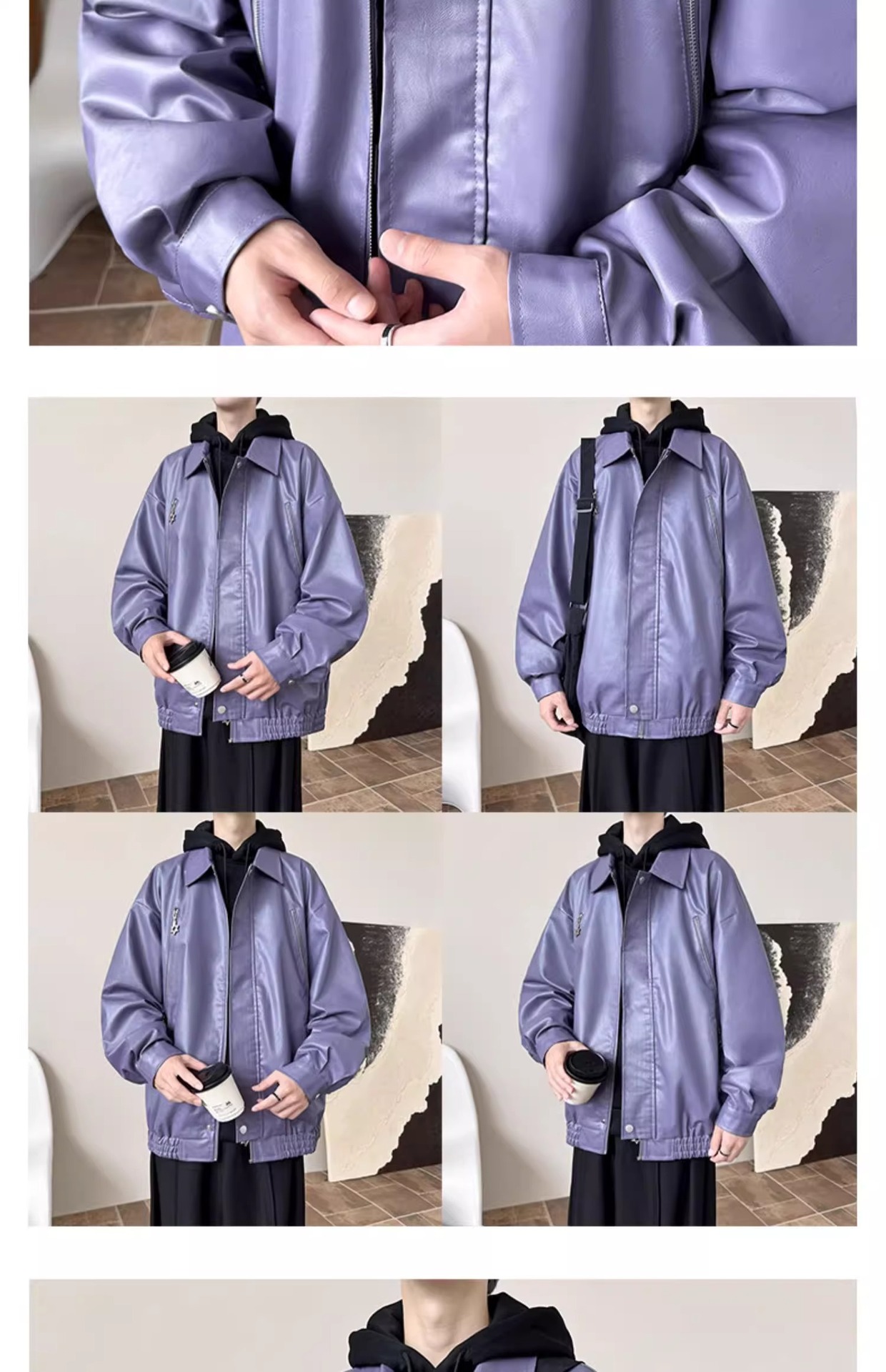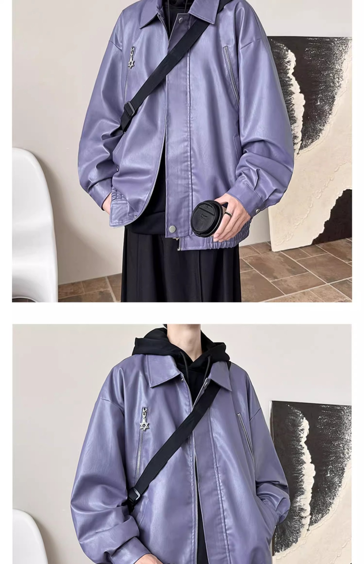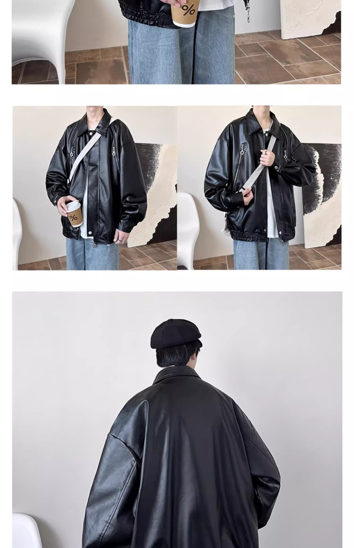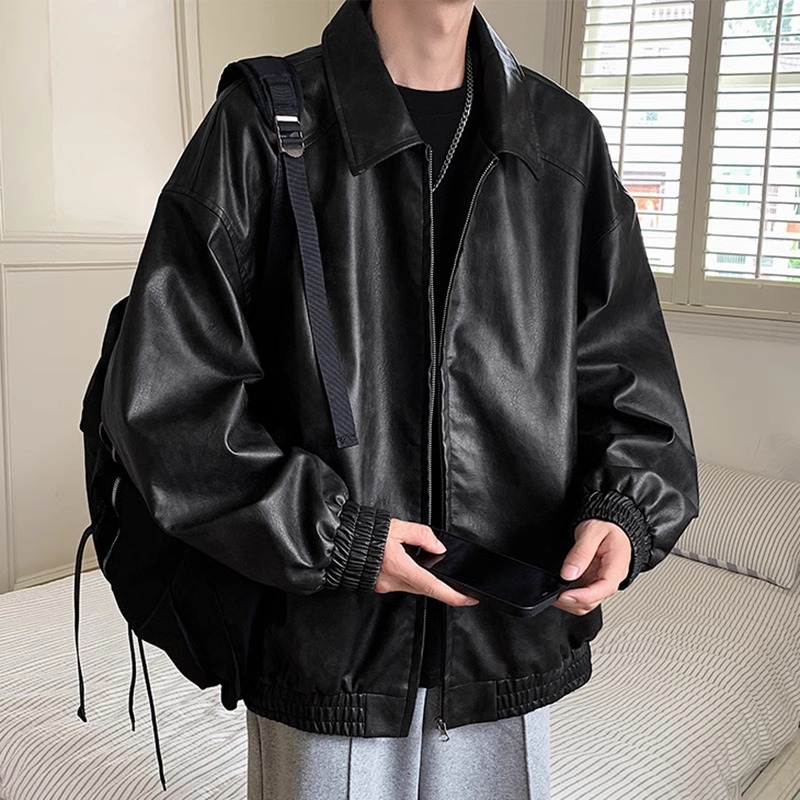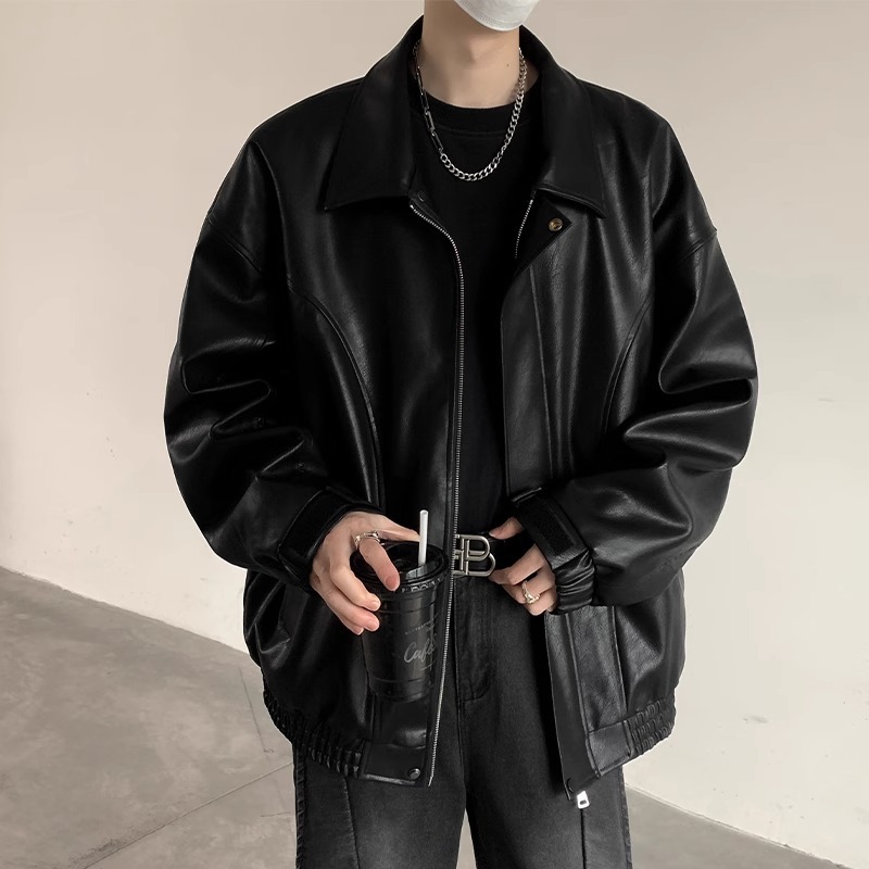 NASA 스타 지퍼 PU 가죽 자켓 남자의 봄과 가을 새로운 어두운 미국 스타일 뜨거운 오토바이 단색 옷깃 재킷스토어 가기