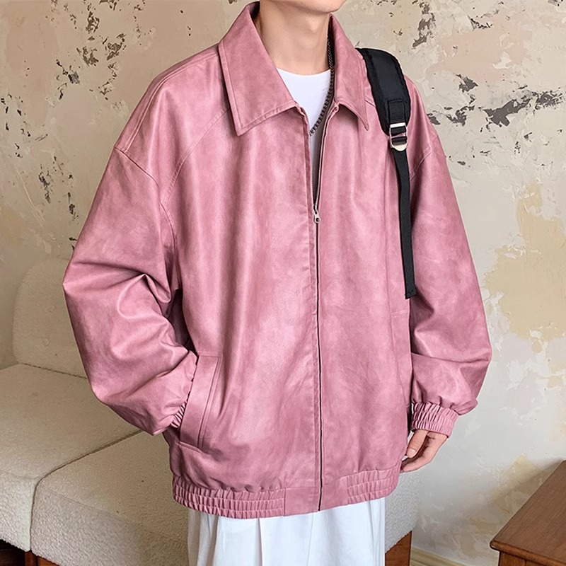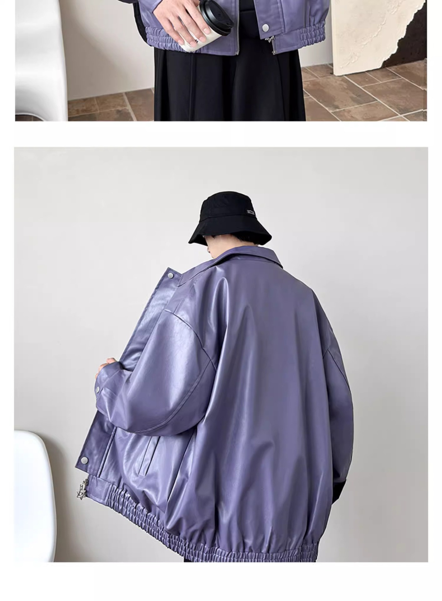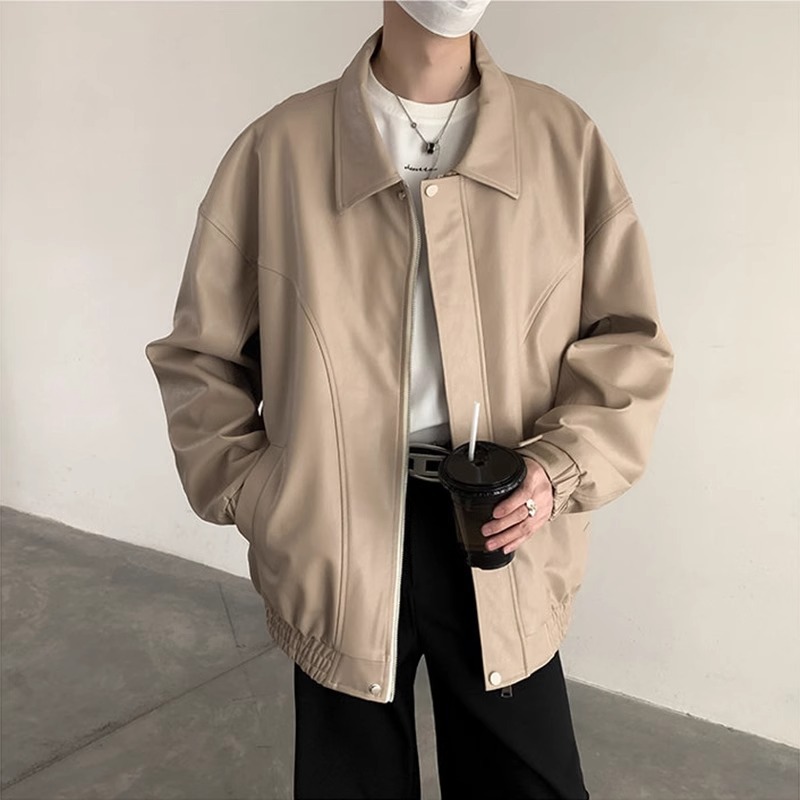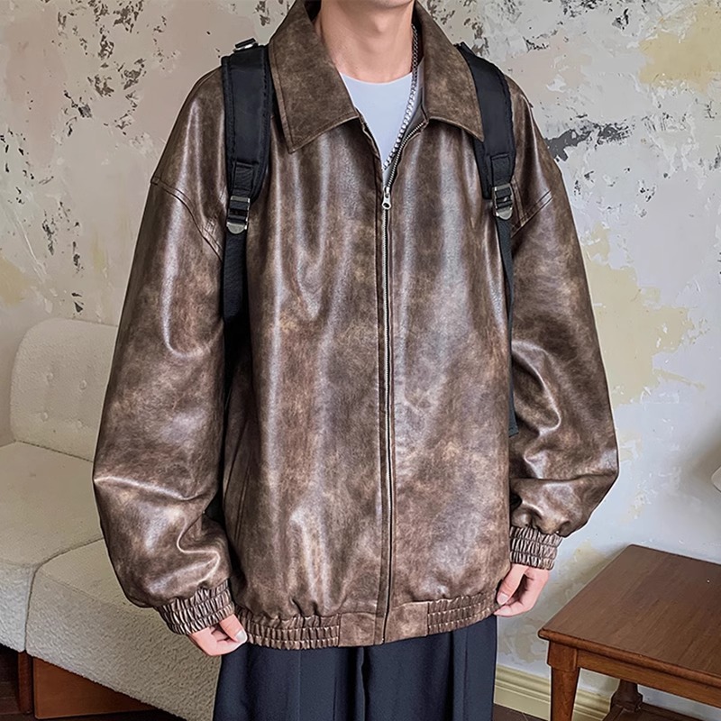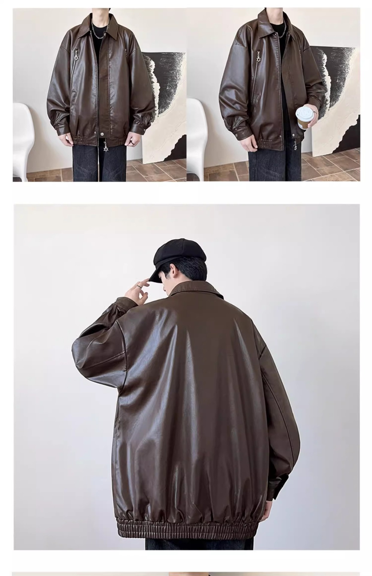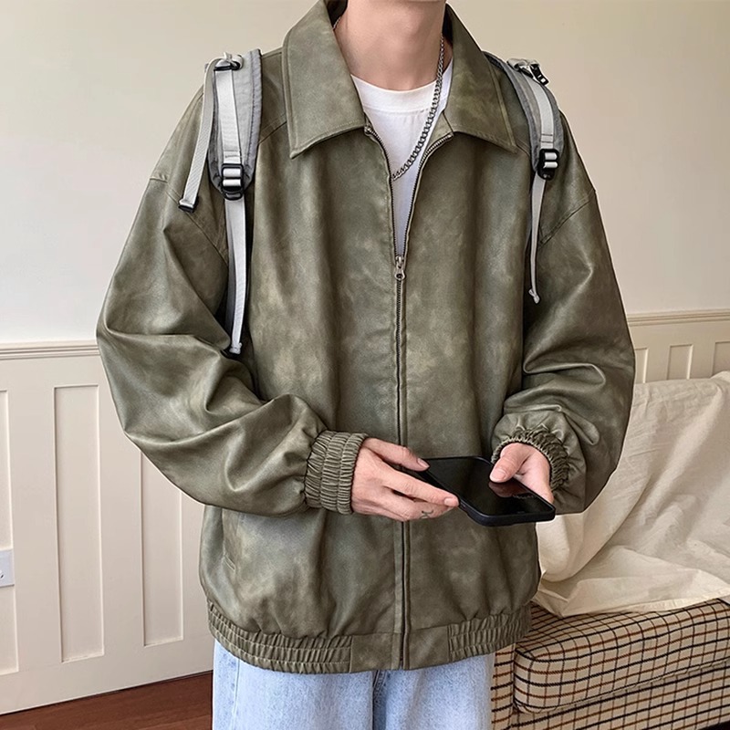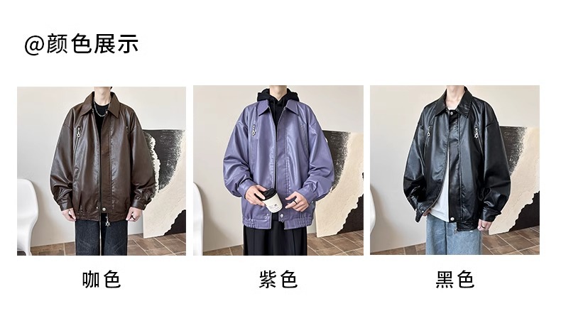 NASA 스타 지퍼 PU 가죽 자켓 남자의 봄과 가을 새로운 어두운 미국 스타일 뜨거운 오토바이 단색 옷깃 재킷스토어 가기
