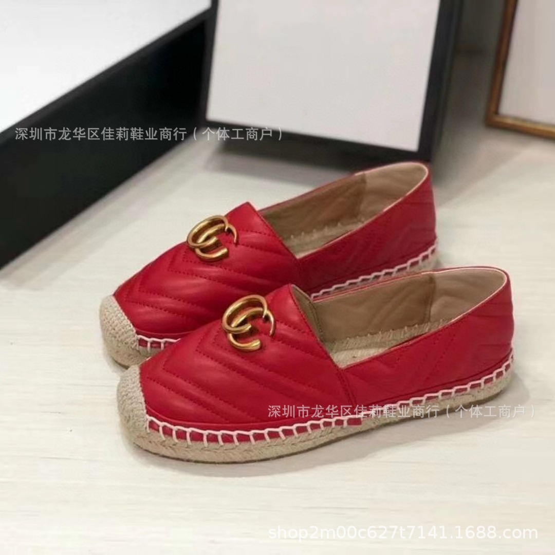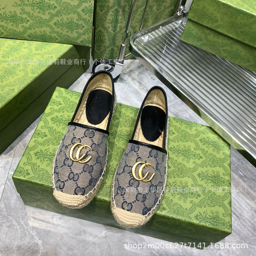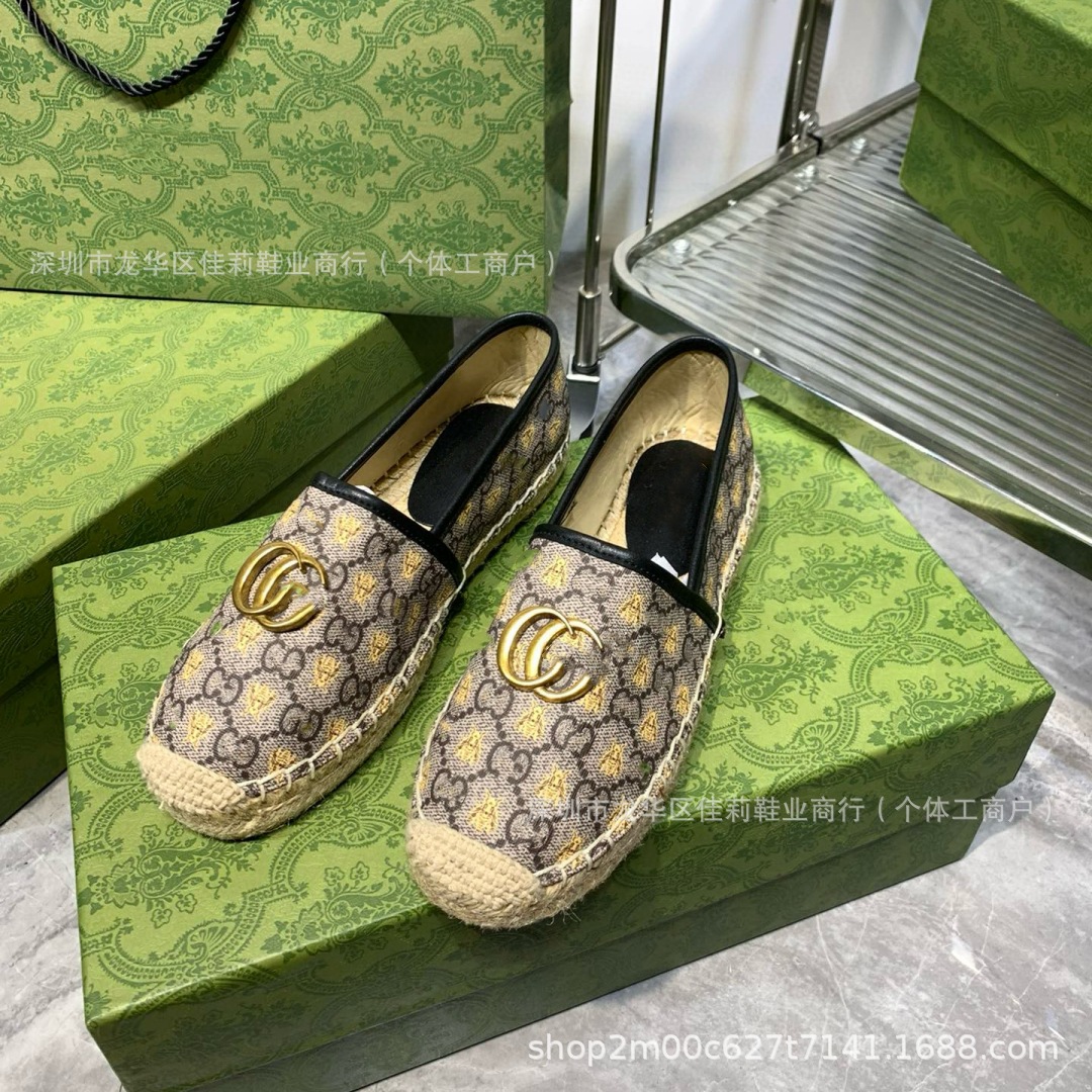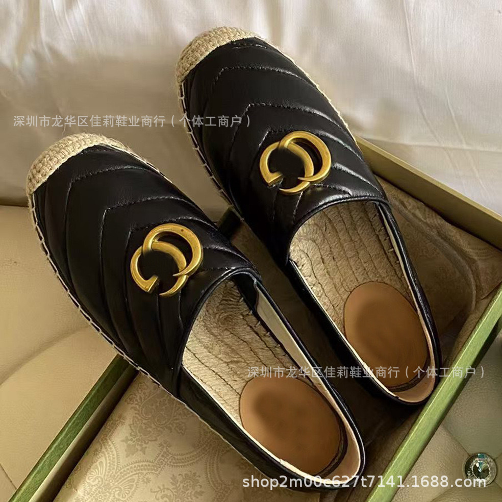 높은 버전 G 홈 자수 인쇄 어부 신발 가을 2024 짠 고무 단독 가죽 얕은 입 캐주얼 여성 신발스토어 가기