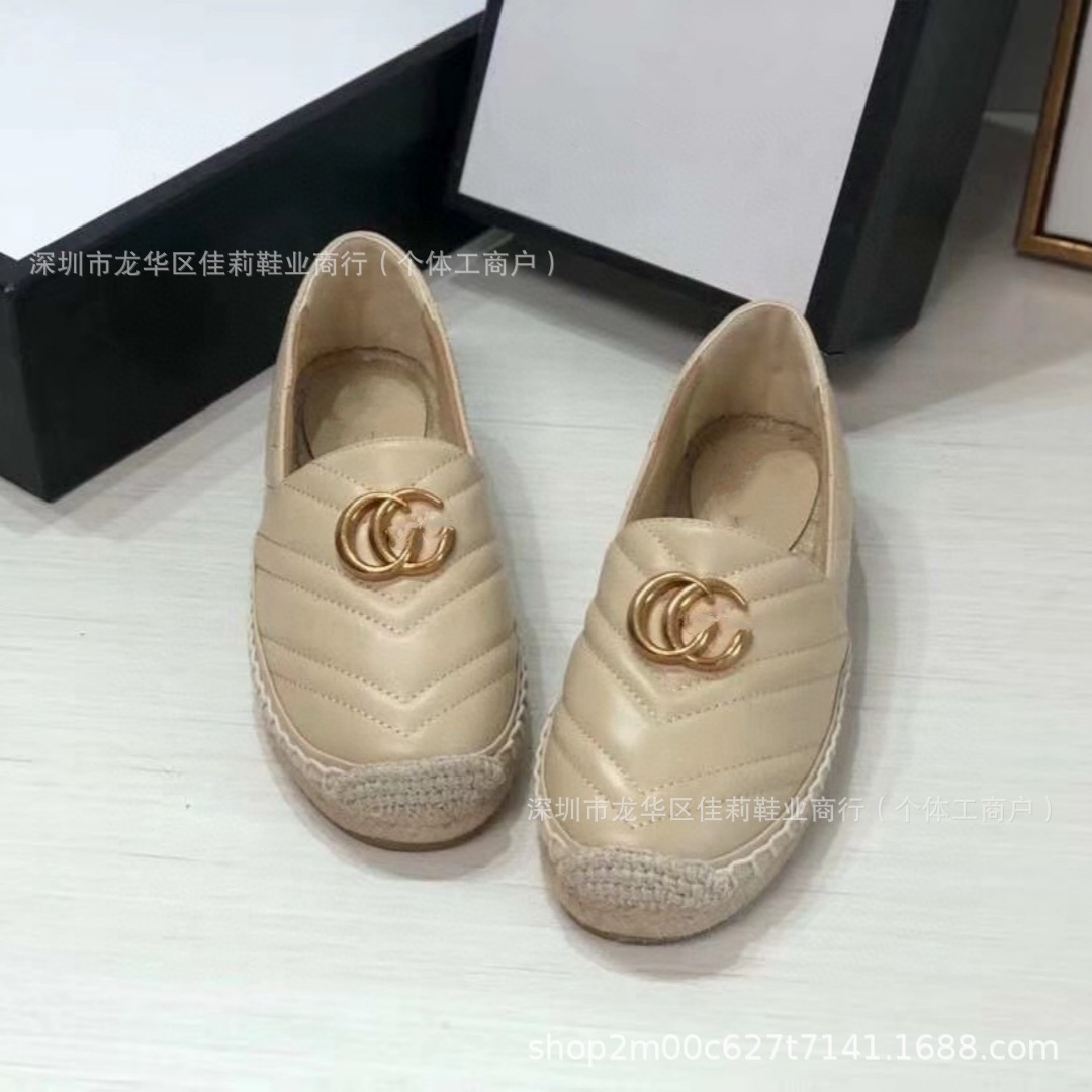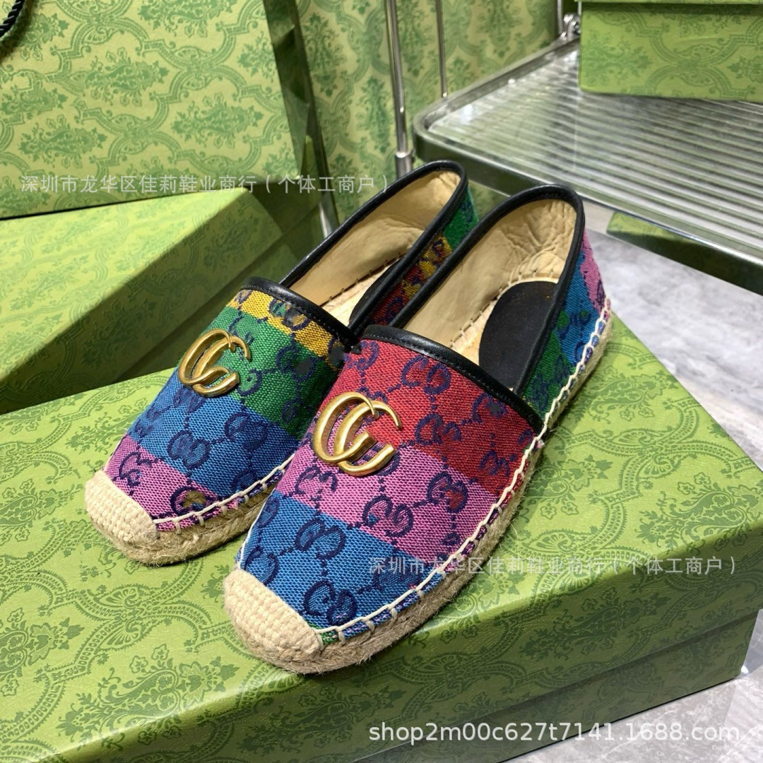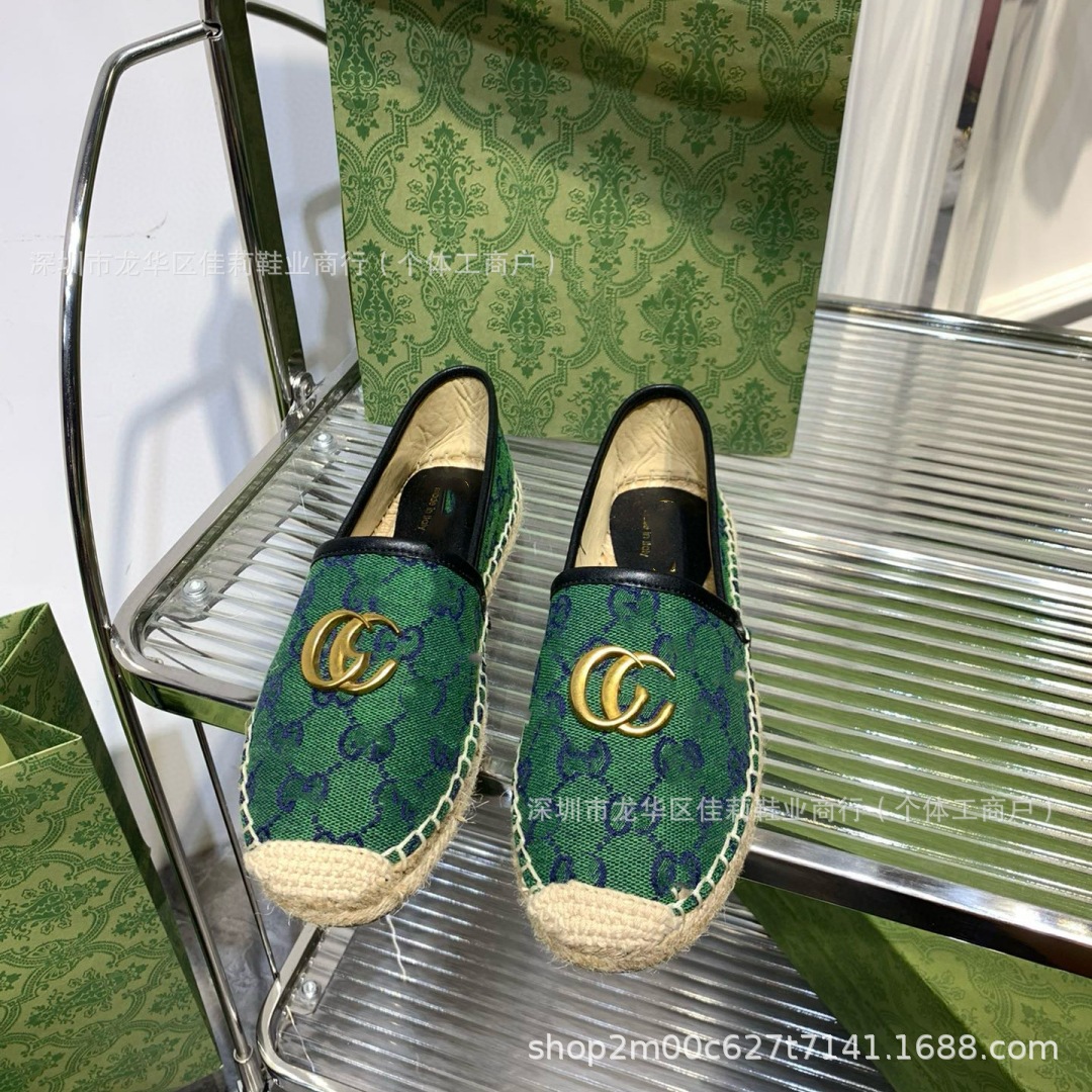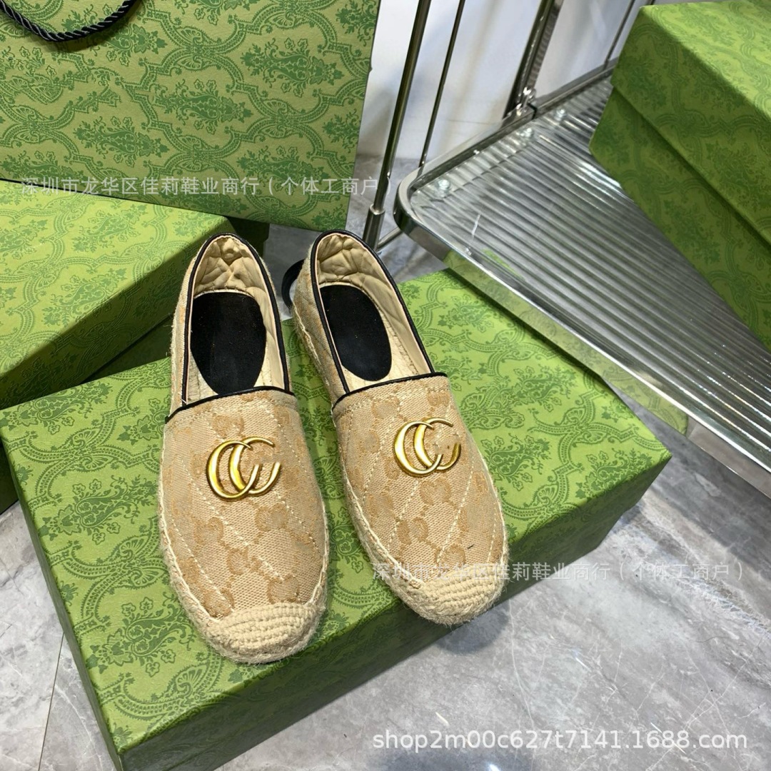 높은 버전 G 홈 자수 인쇄 어부 신발 가을 2024 짠 고무 단독 가죽 얕은 입 캐주얼 여성 신발스토어 가기
