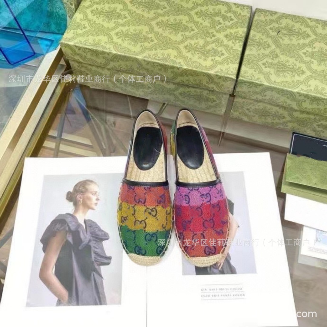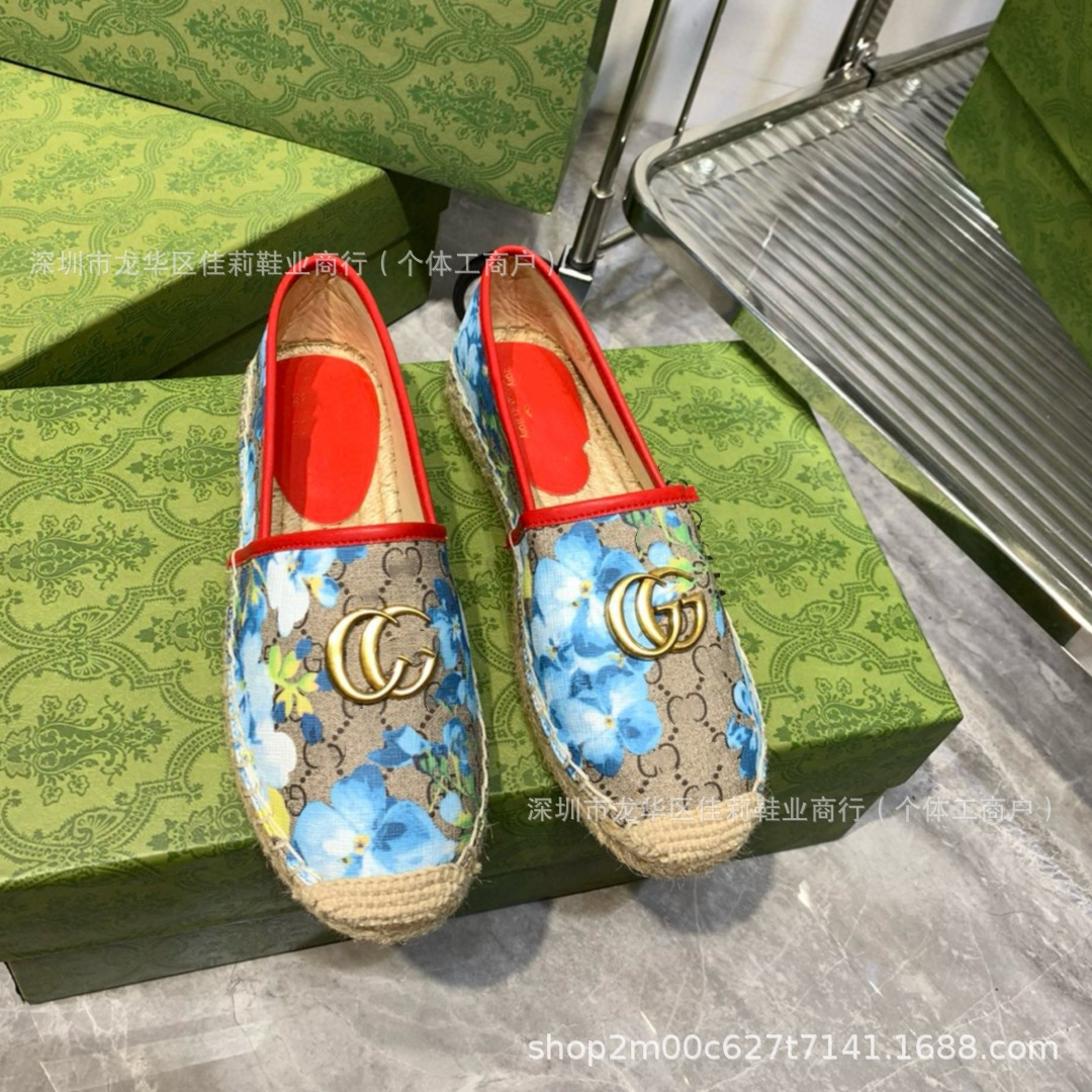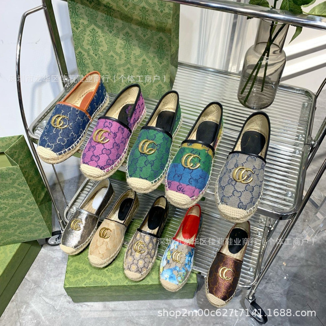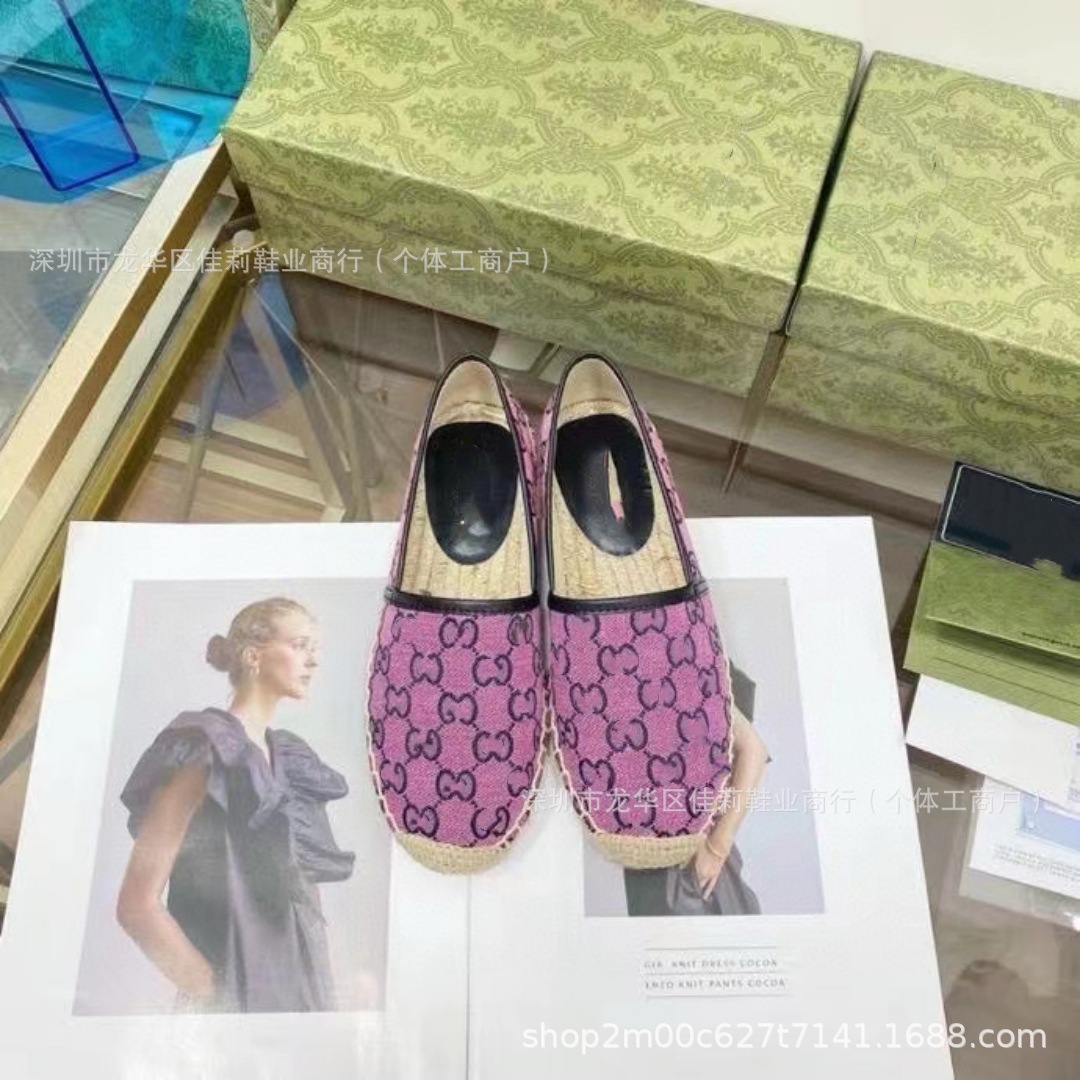 높은 버전 G 홈 자수 인쇄 어부 신발 가을 2024 짠 고무 단독 가죽 얕은 입 캐주얼 여성 신발스토어 가기
